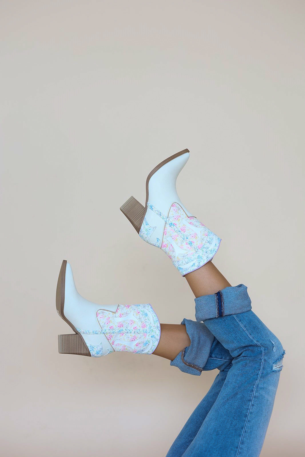 - Cream white and floral print western boot