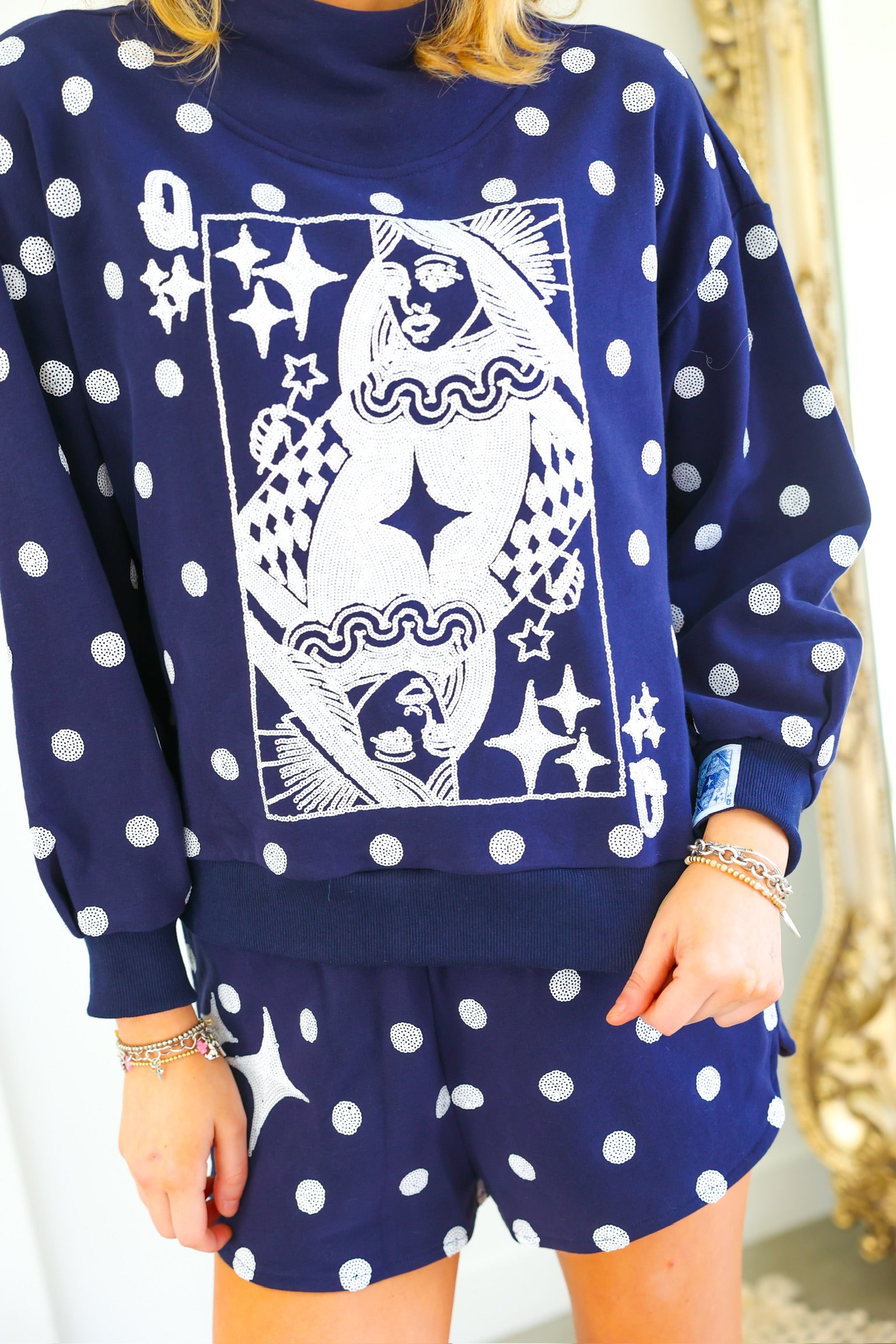 Navy Polka Dot Sparkle Logo Short Queen of Sparkles