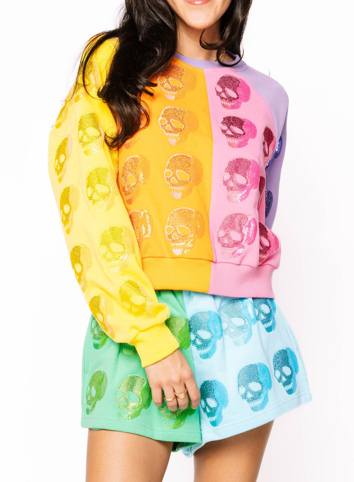 Colorblock Multi Skull Short Queen of Sparkles
