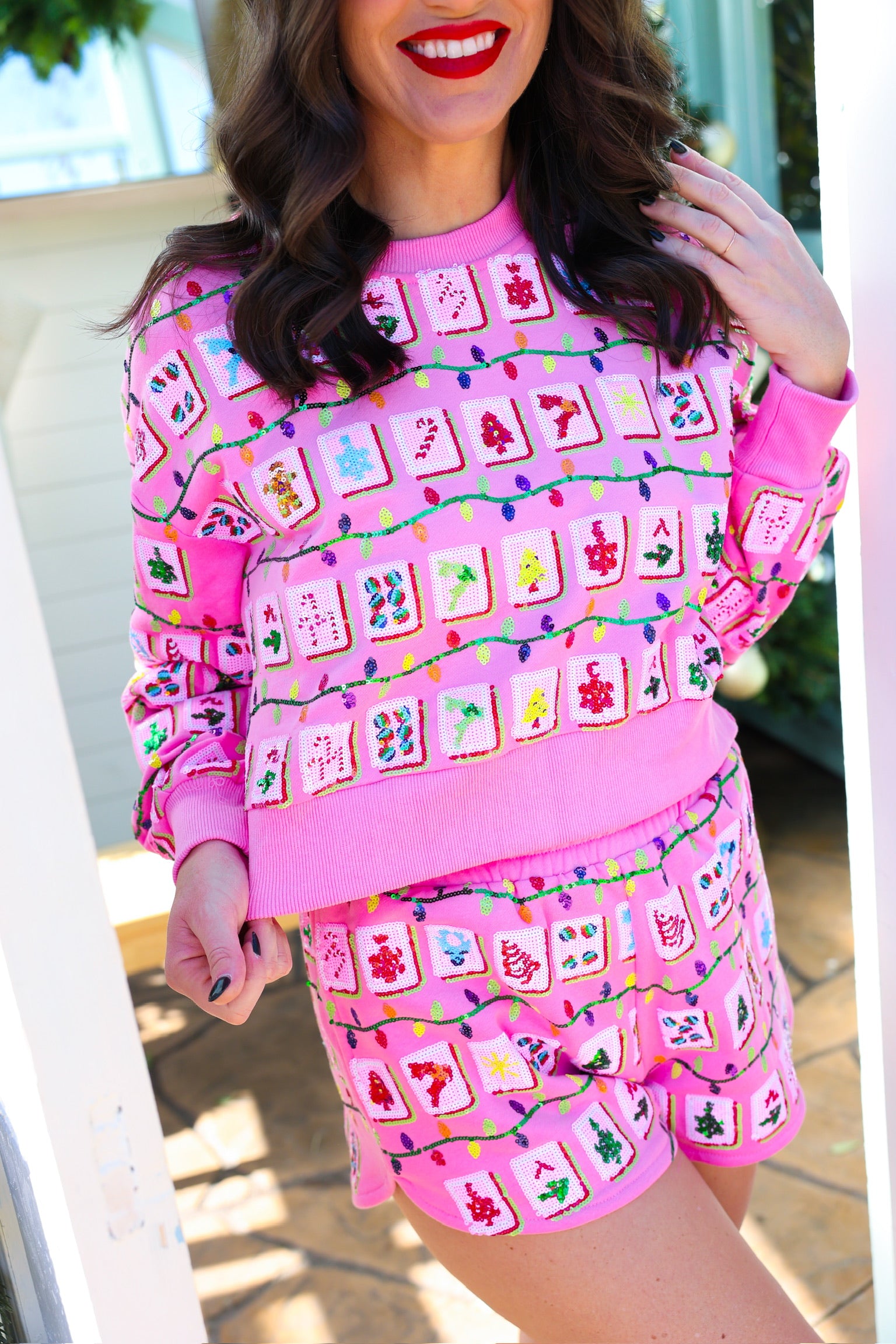 Pink Christmas Mahjong Tile Short Queen of Sparkles