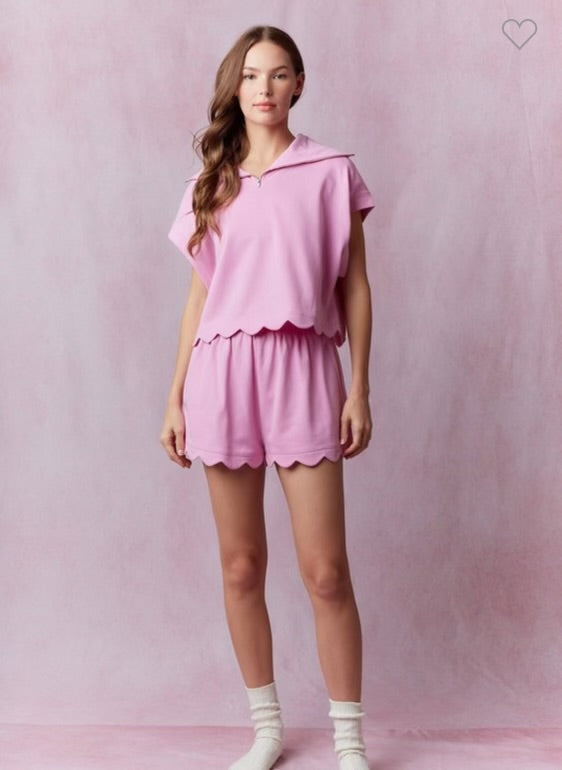 Light As Air French Terry Pink Scalloped Shorts
