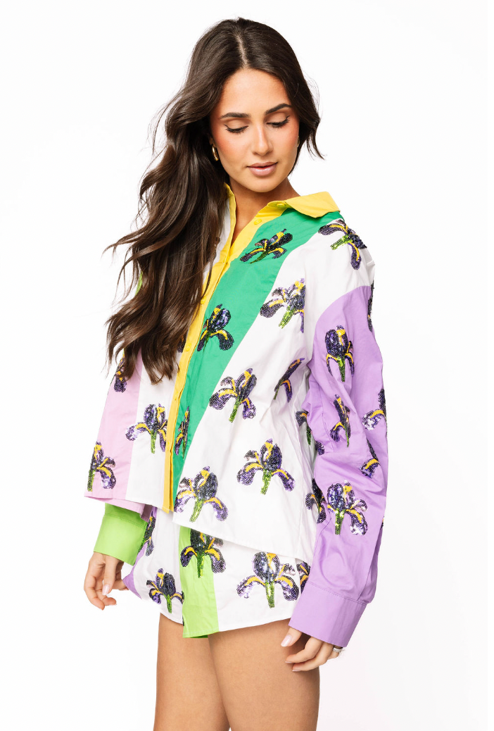 Purple, Green, Yellow & White Colorblock Iris Cotton Short Queen of Sparkles