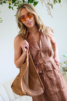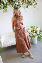 Style with the matching halter or a simple knit tank and sandals.