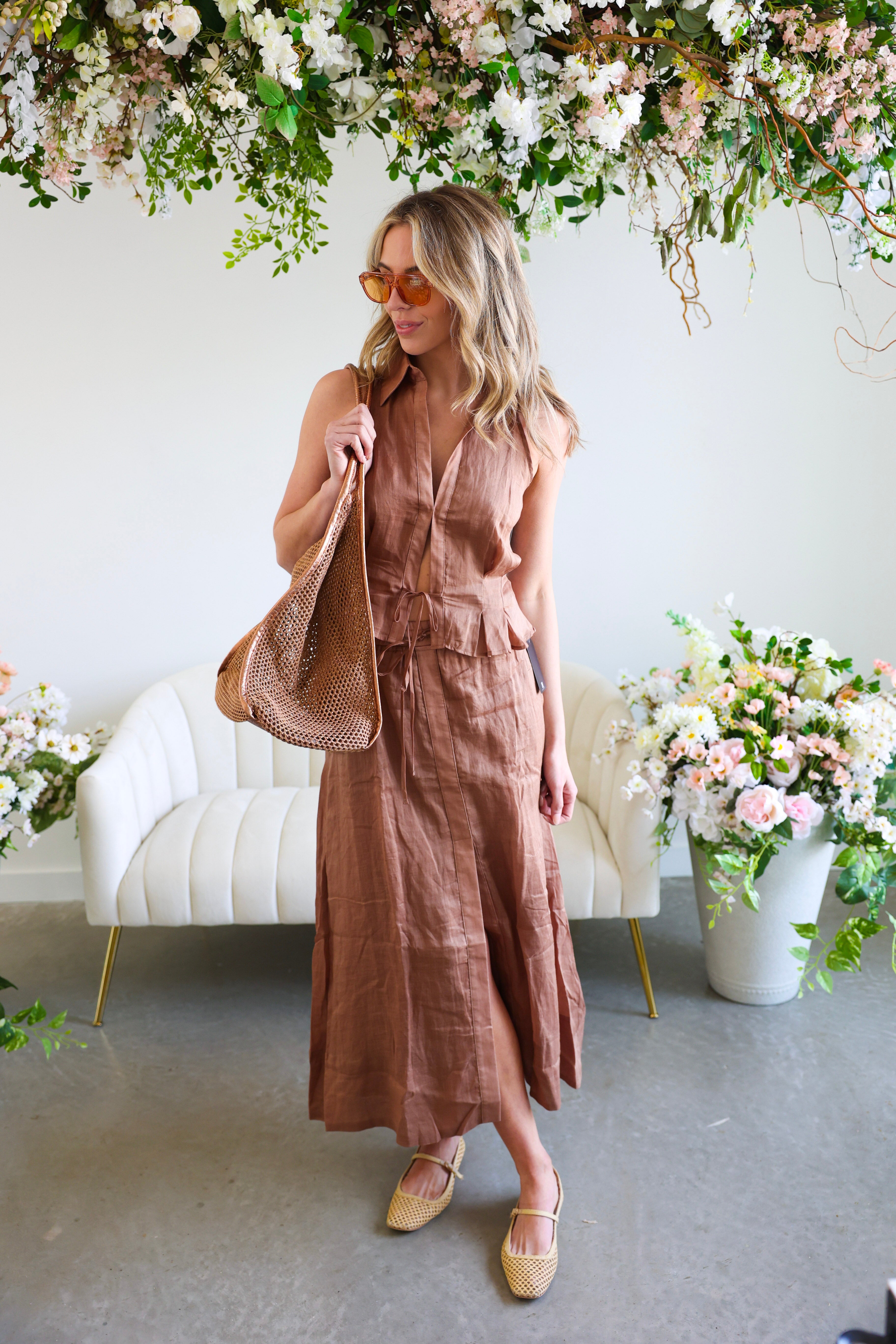 Flowy, flattering, and feminine šæ This maxi skirt features a sleek silhouette with a subtle slit for movement and ease! Pairs with the matching blouse for a whole effortless look!
