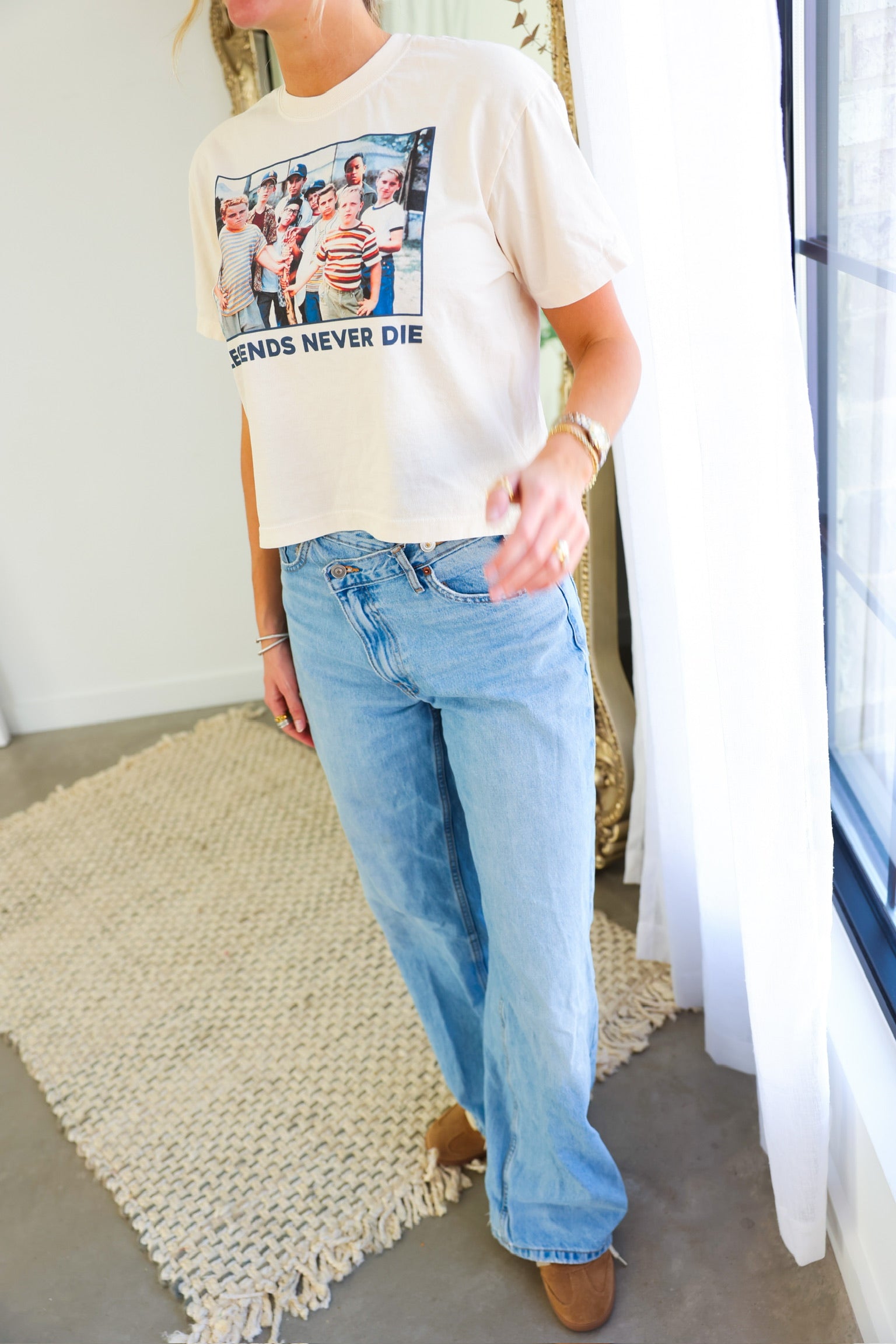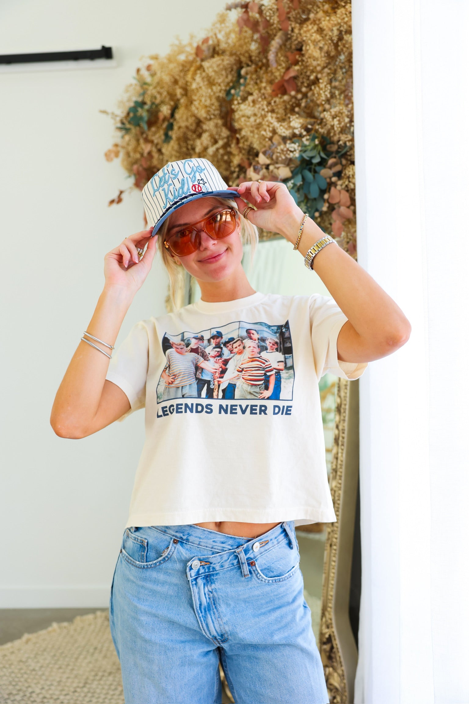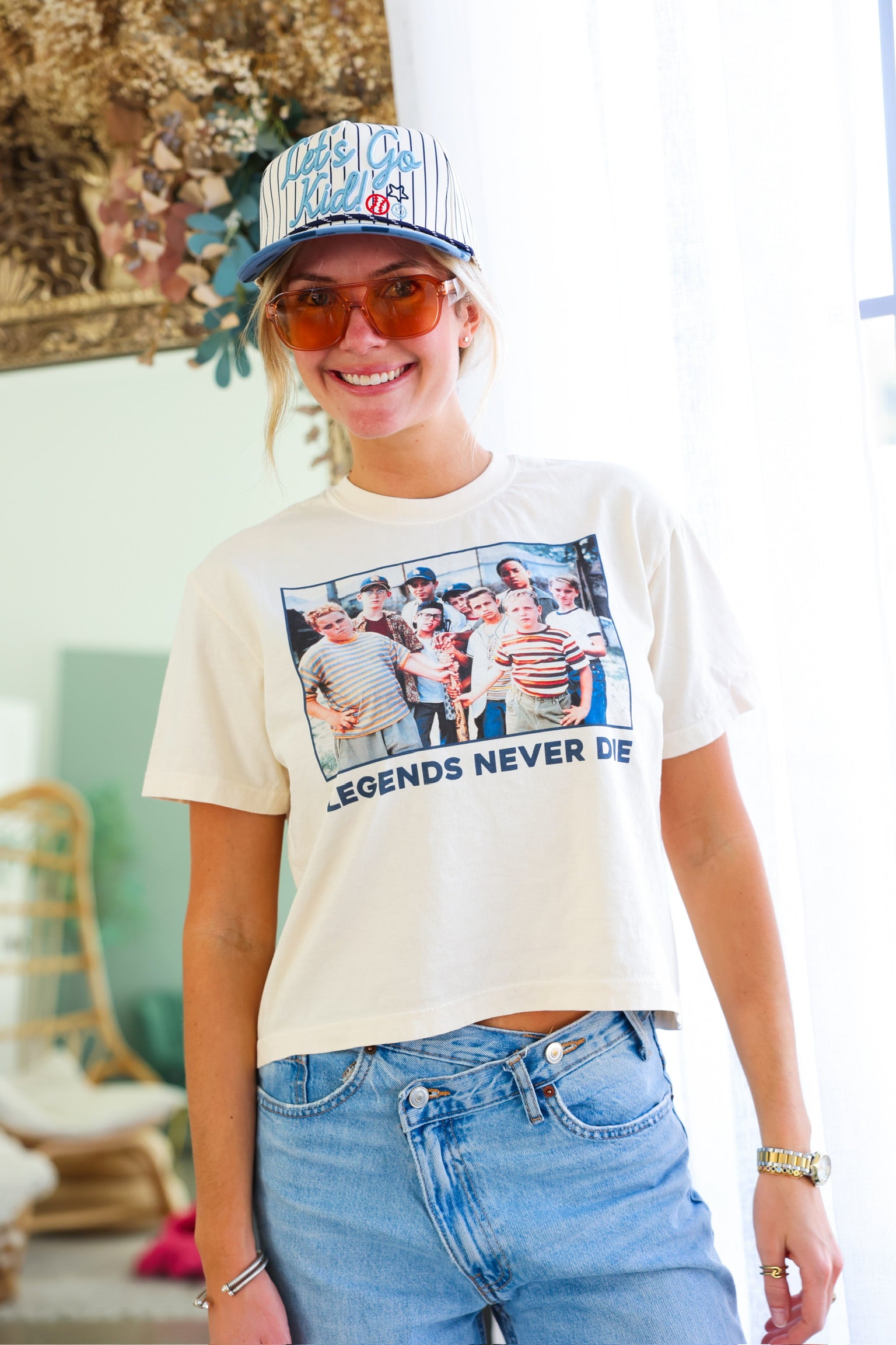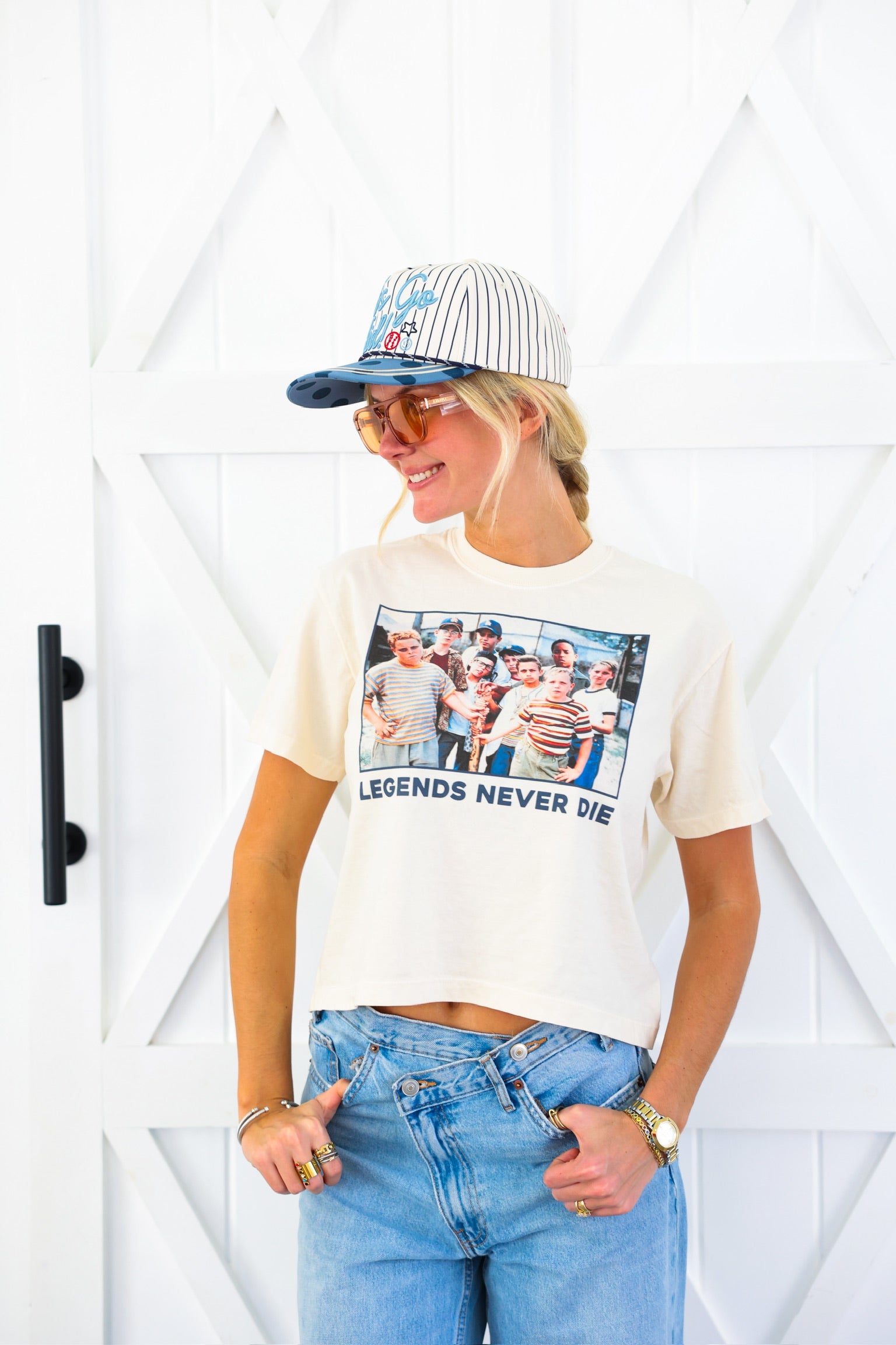 The Legends Never Die Crop Tee is a bold, vintage-inspired staple with a modern edge. With a cropped length and statement graphic, this tee brings instant cool to any outfit.