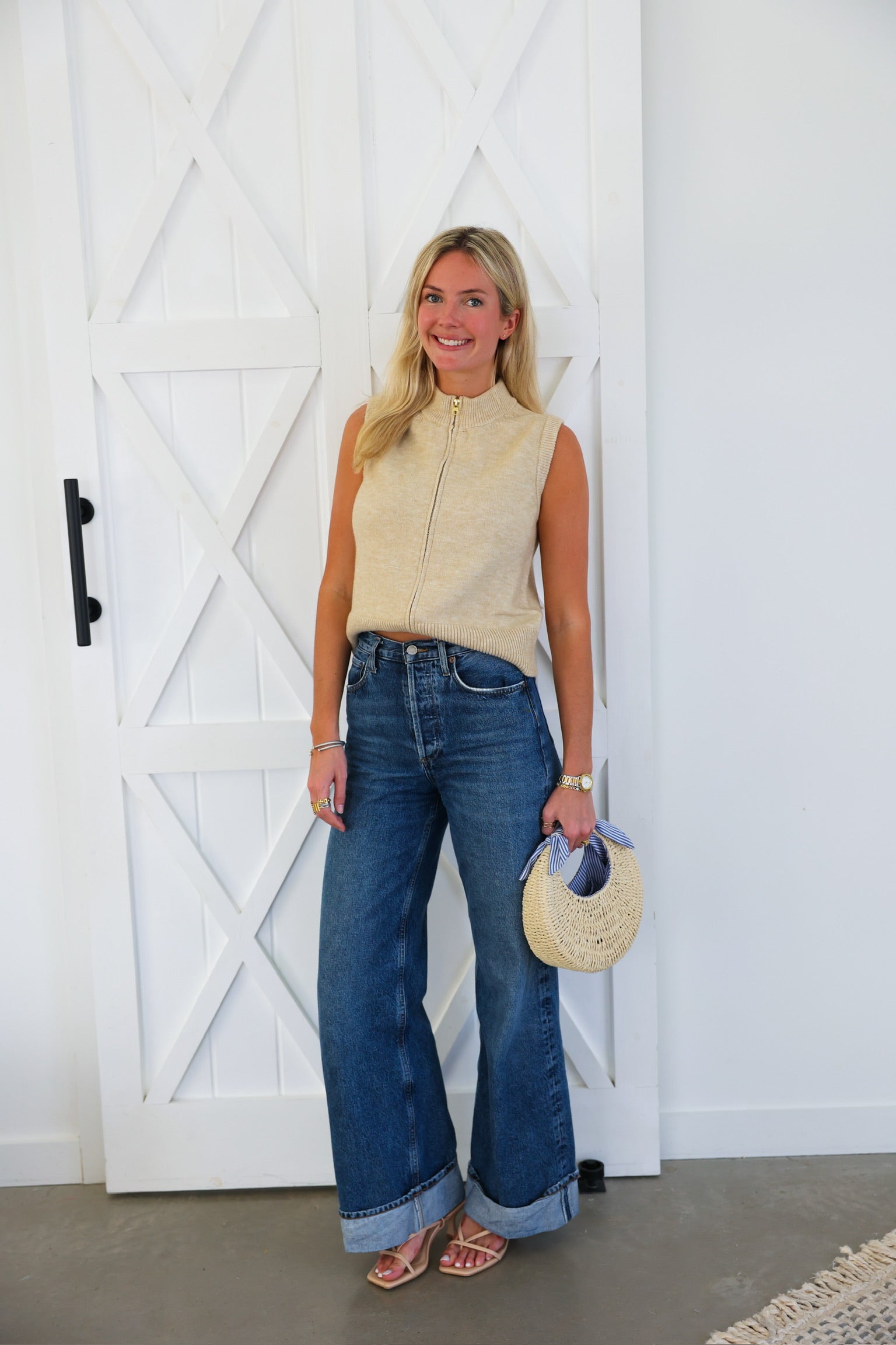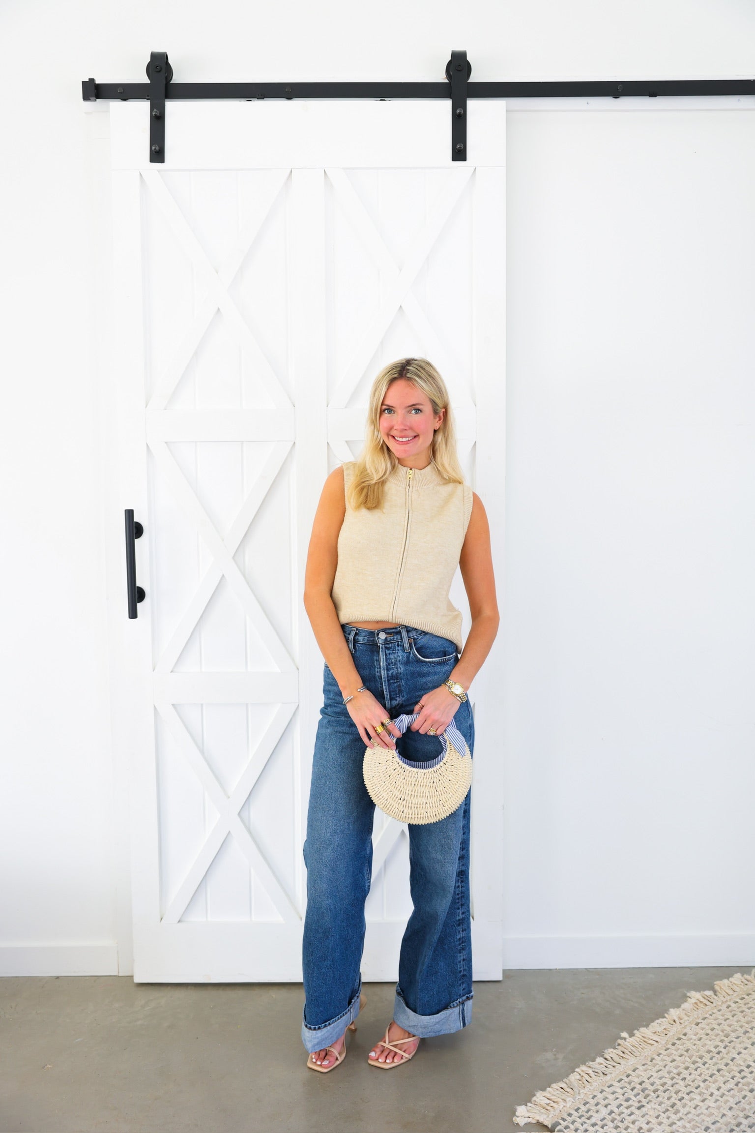 Sporty meets sophisticated ✨ This sleeveless full zip sweater gives effortless structure with a modern, athletic feel.