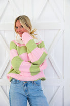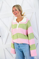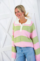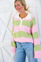 Pink & Sage Stripe Collared Knit Sweater
