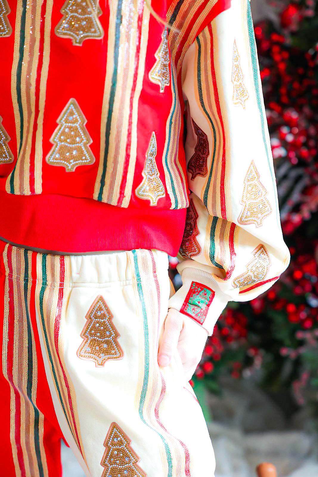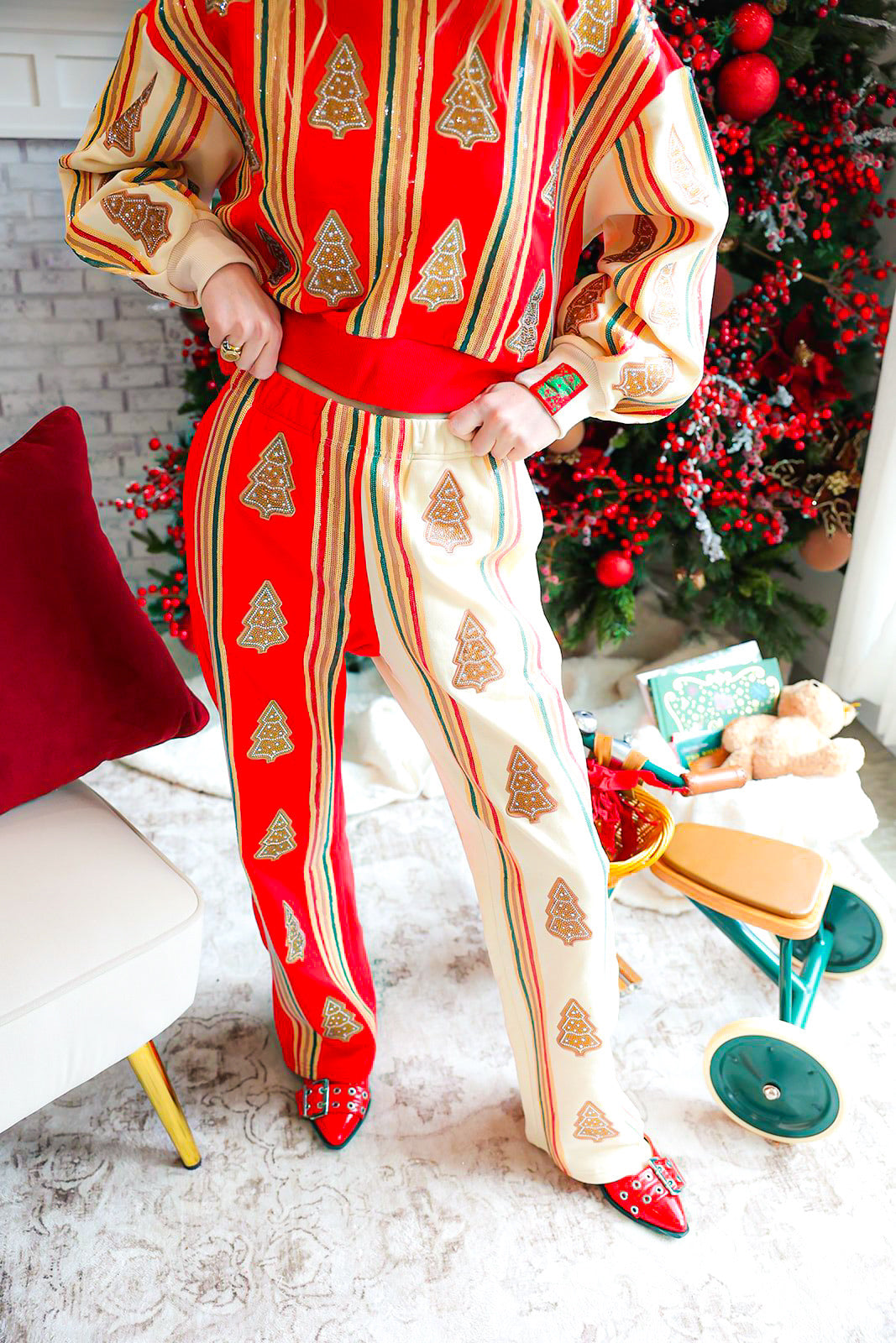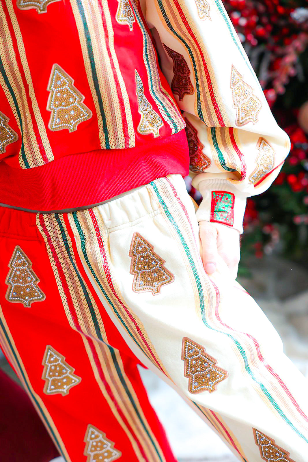 Red & Ivory Striped Christmas Cookie Sweatpant Queen of Sparkles