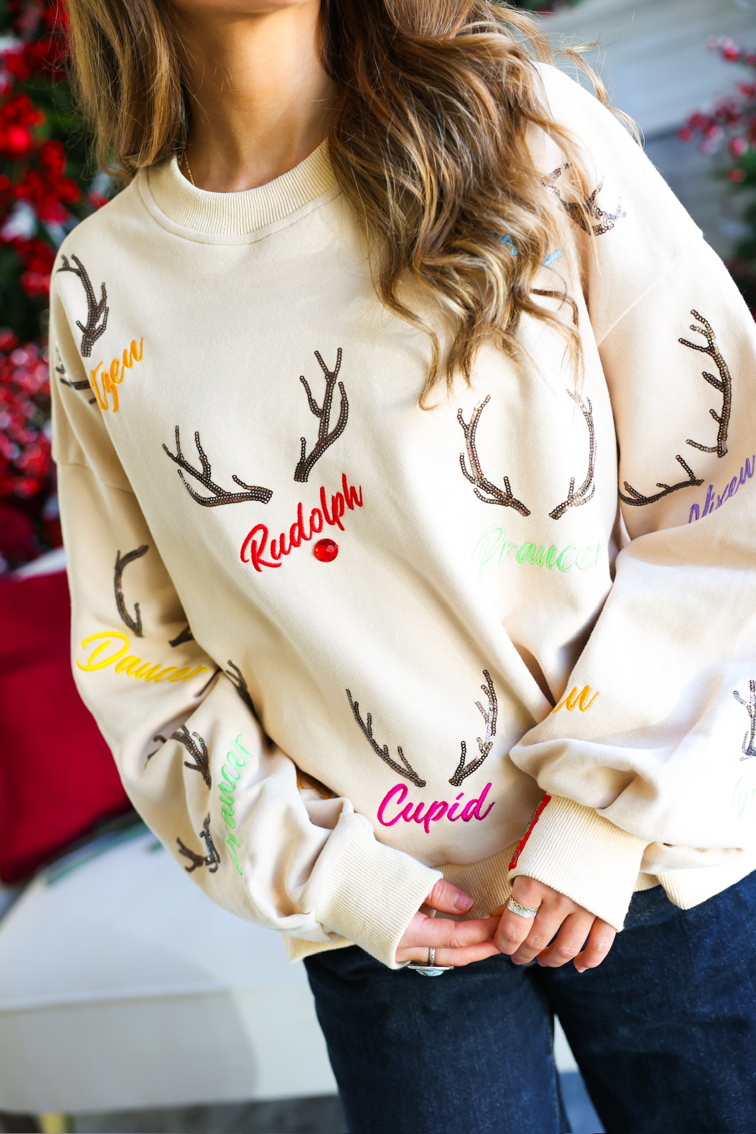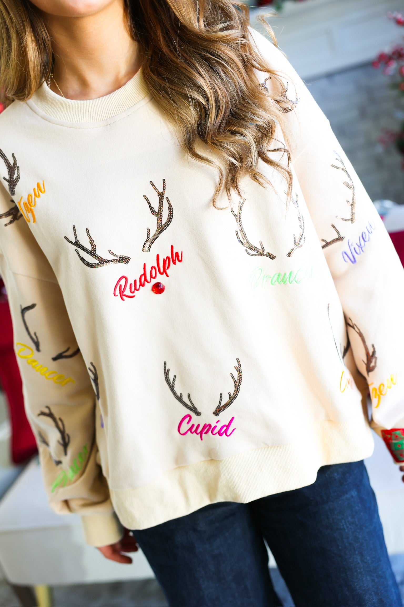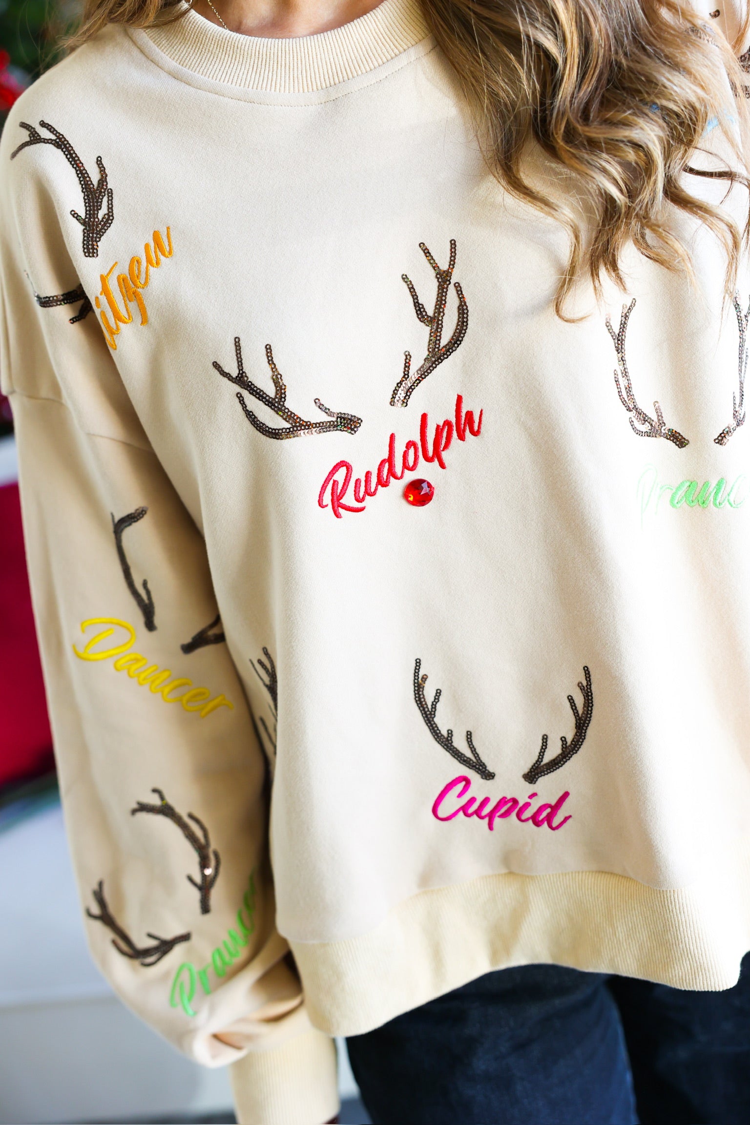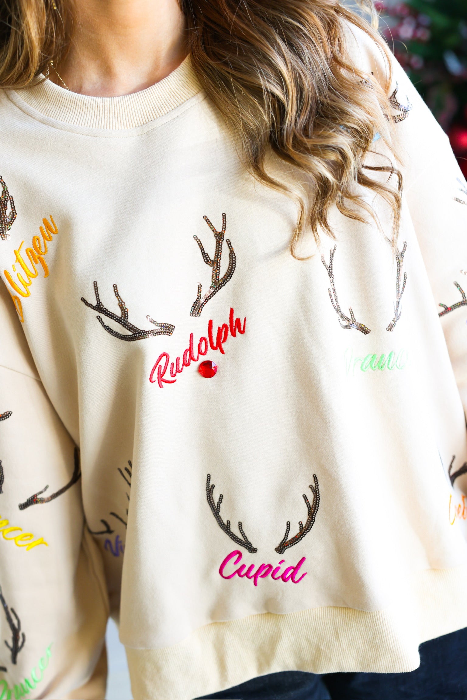 • Sequin/embroidered reindeer names