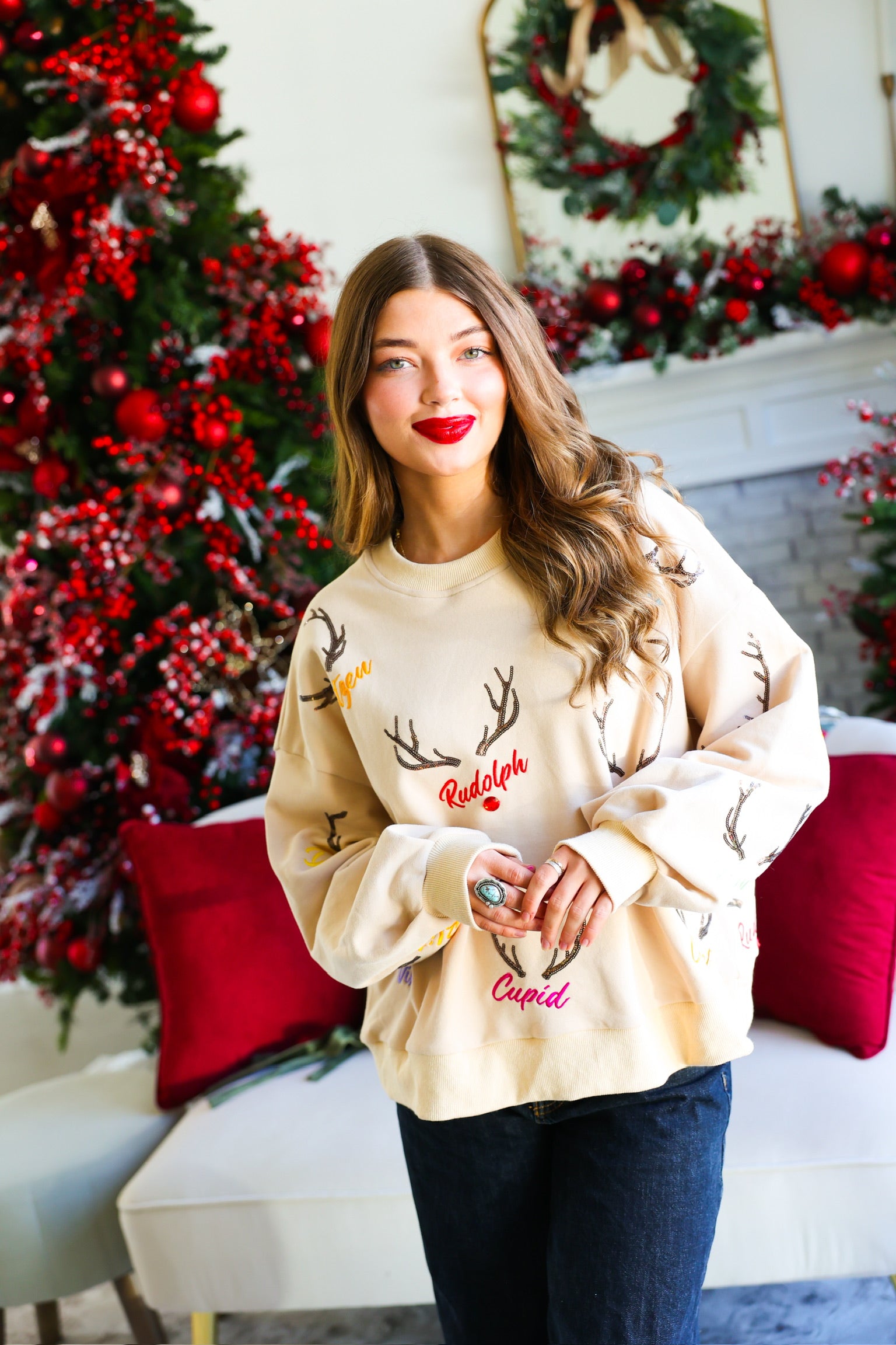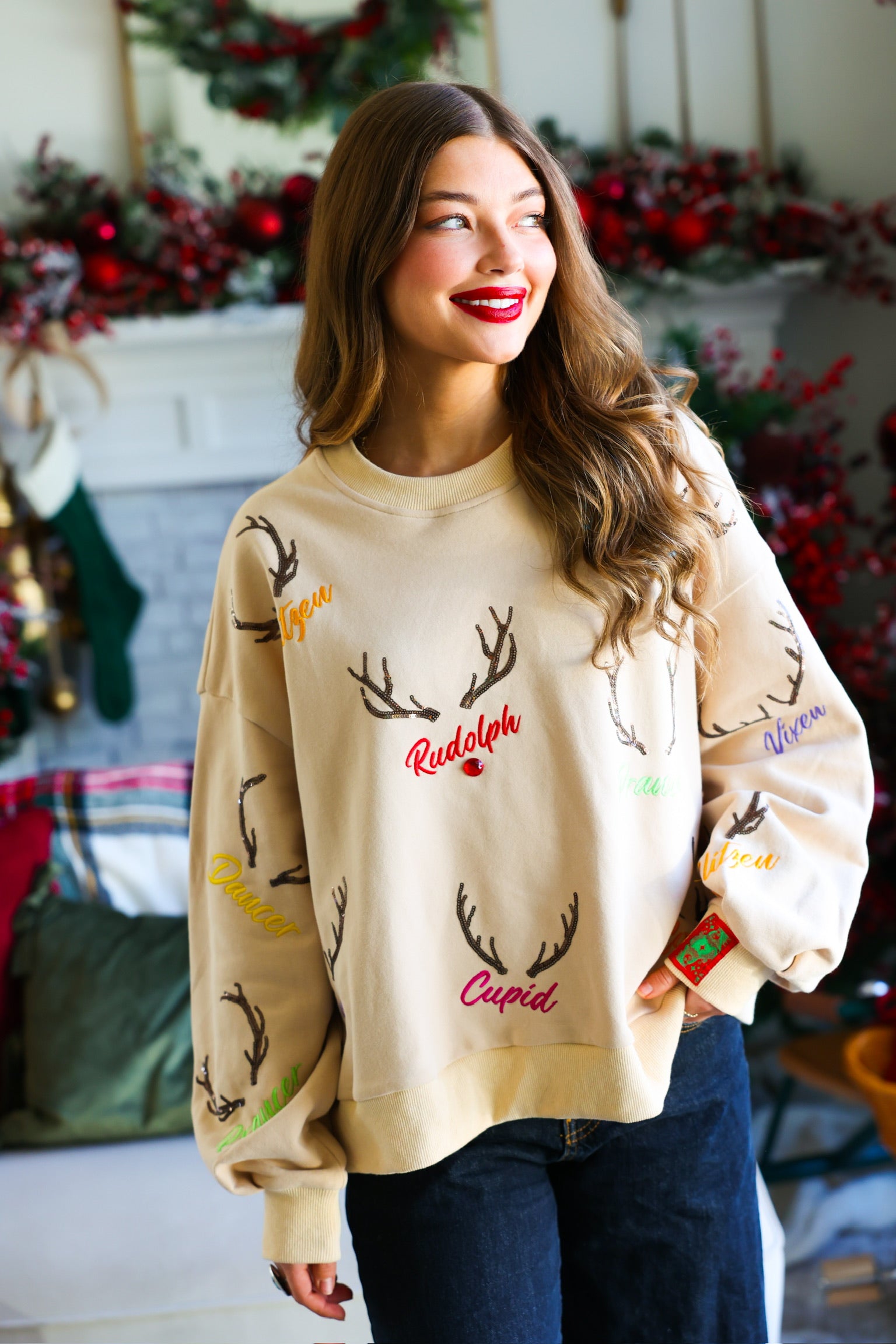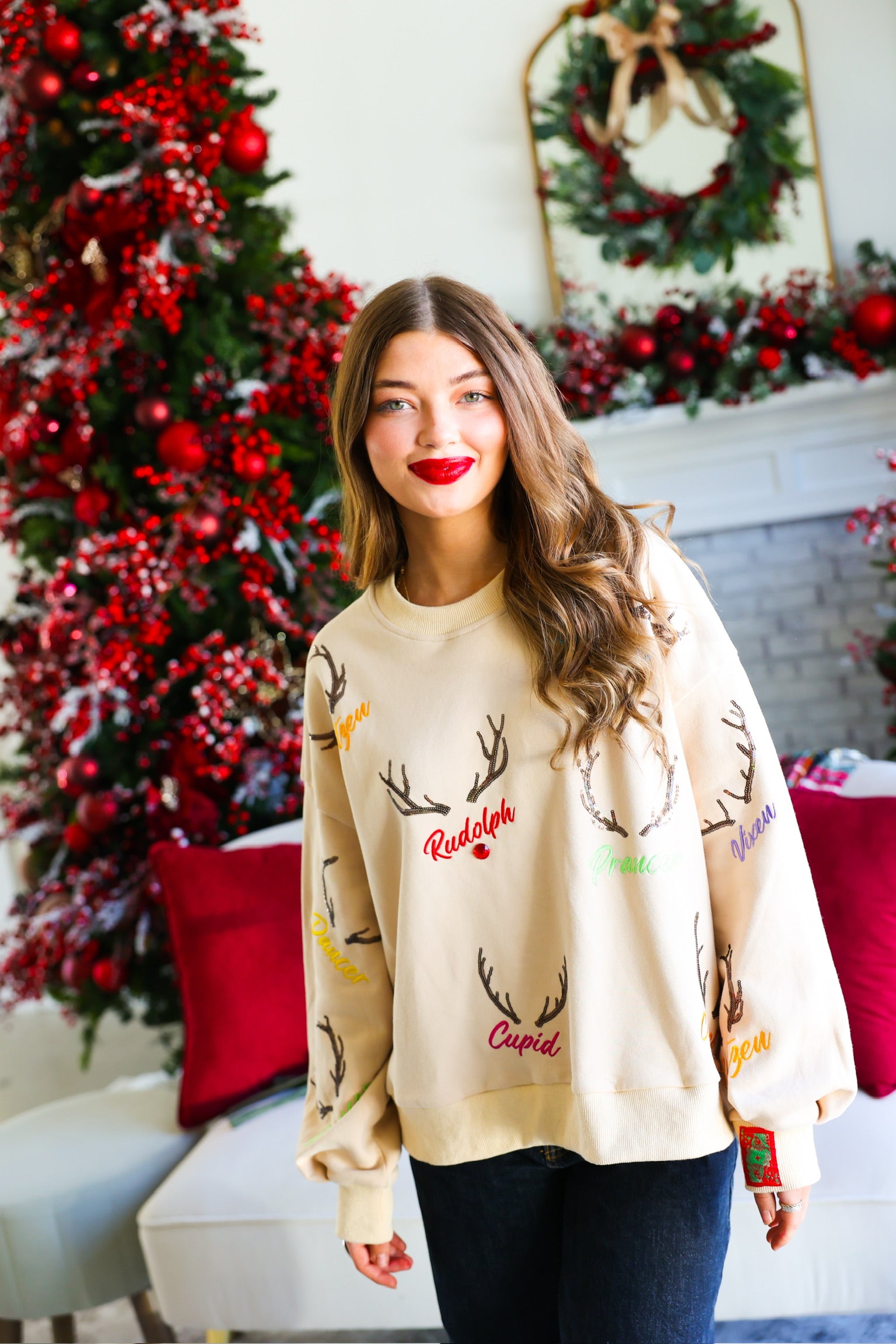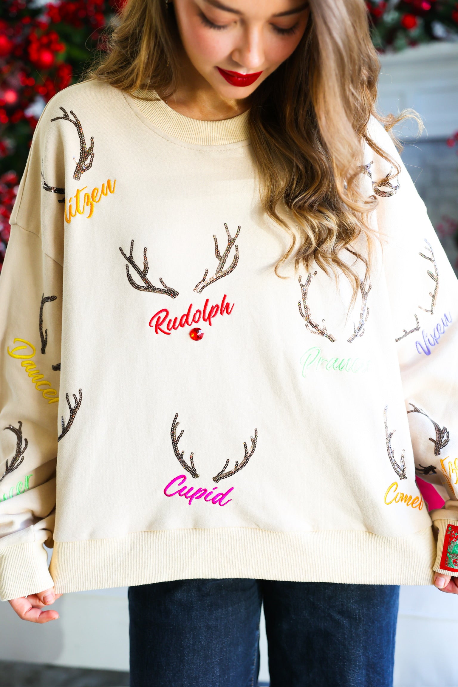 • Sequin/embroidered reindeer names