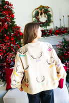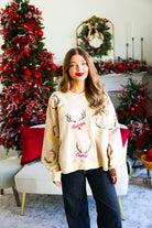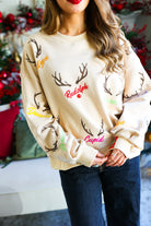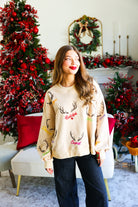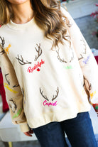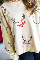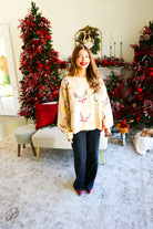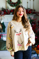 Tan Reindeer Name & Antlers Sweatshirt Queen of Sparkles