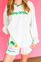 - Heather grey high rise sweatshorts with pockets and adjustable drawstrings at the waist