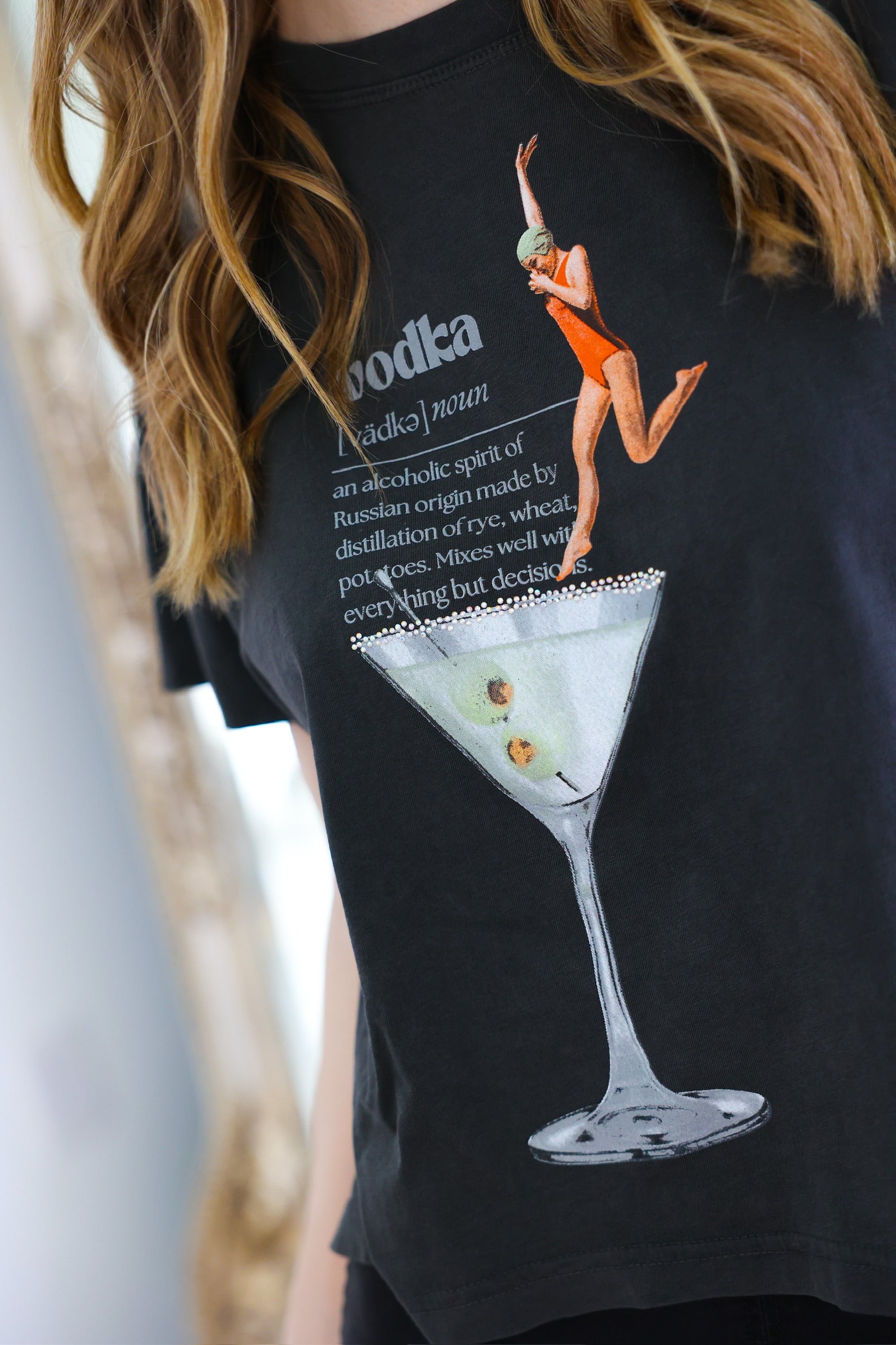 Stand out with the Vodka Jump Hi-Lo Tee, a trendy piece that combines playful attitude with modern style. The distinctive hi-lo cut adds dimension and movement, while the bold graphic makes an unforgettable impression. Perfect for those who embrace fun fashion and aren't afraid to express themselves, this tee transitions seamlessly from casual hangouts to night-out ready. Comfort meets confidence in every wear—because great style should always make you feel amazing.