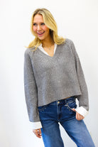 Stay cozy and stylish with this Grey Sweater with Collar. Its soft fabric provides warmth and comfort, while the classic collar adds a refined touch to your casual look. Perfect for layering or wearing on its own, this sweater effortlessly blends timeless design with everyday ease, making it a versatile staple in your wardrobe.