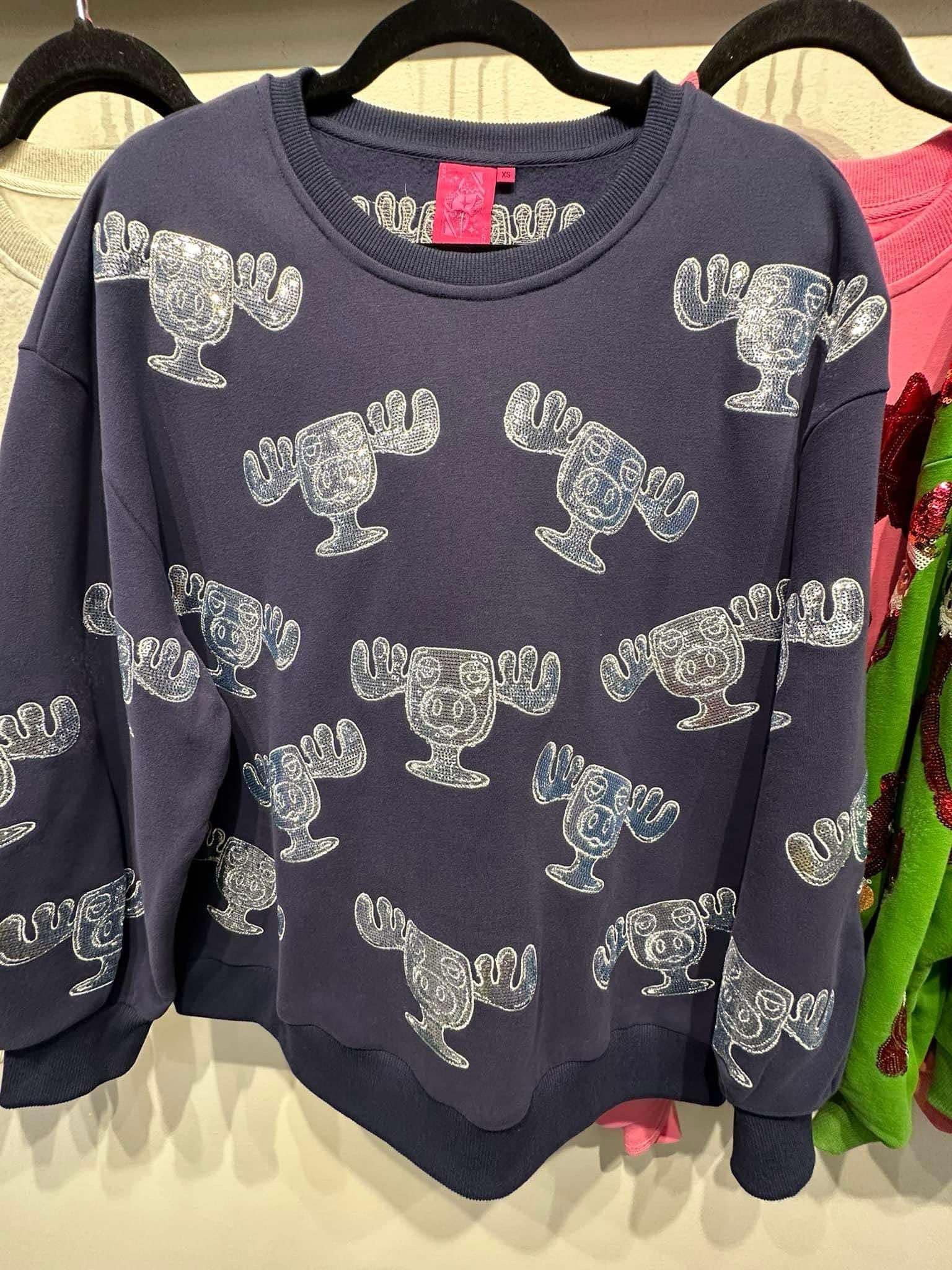 Navy Moose Mug Sweatshirt Queen of Sparkles
