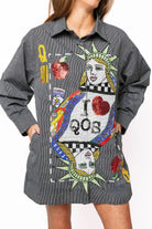Queen of Sparkles Black Striped NYC Queen Card Logo Button Up Cotton Tunic