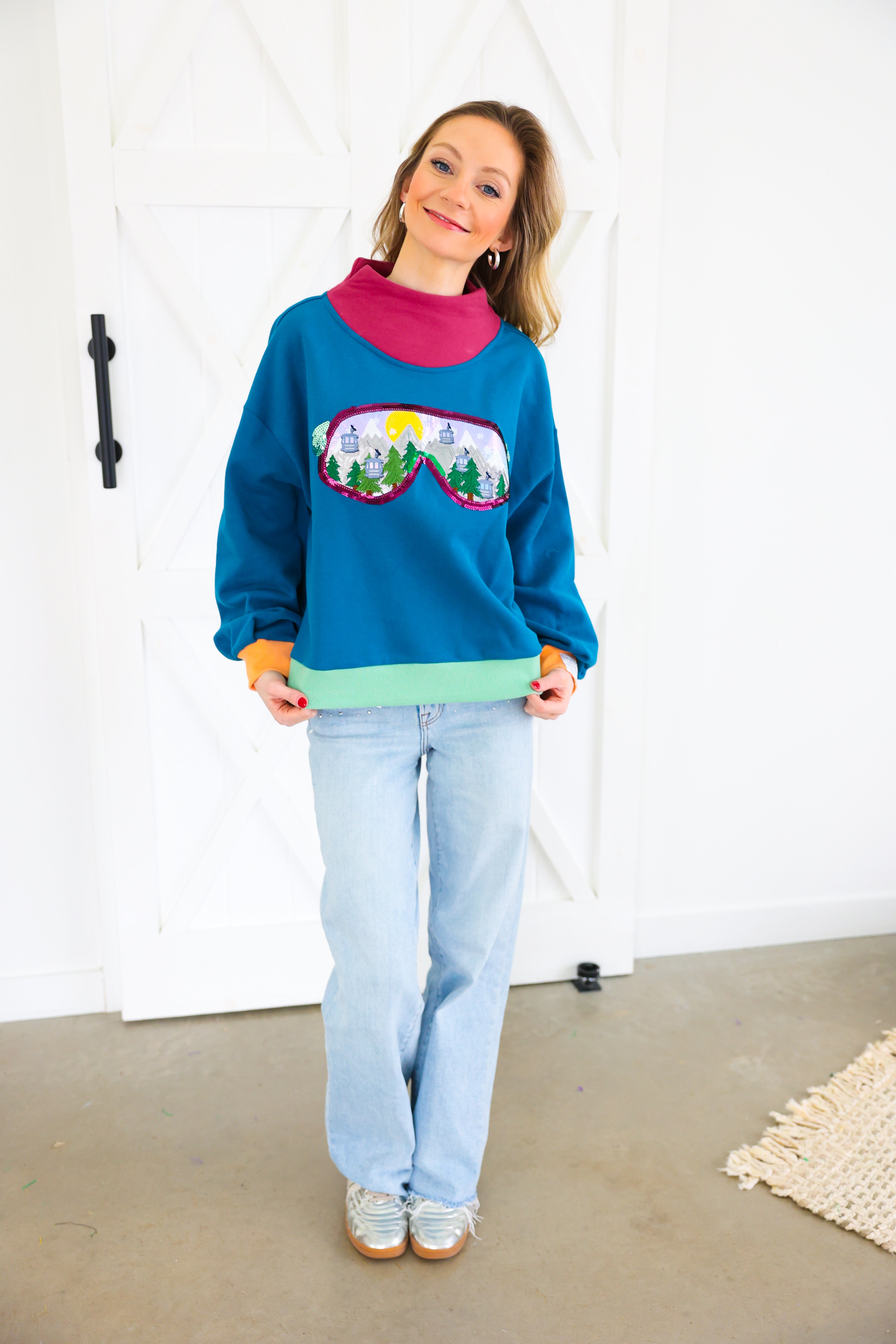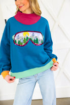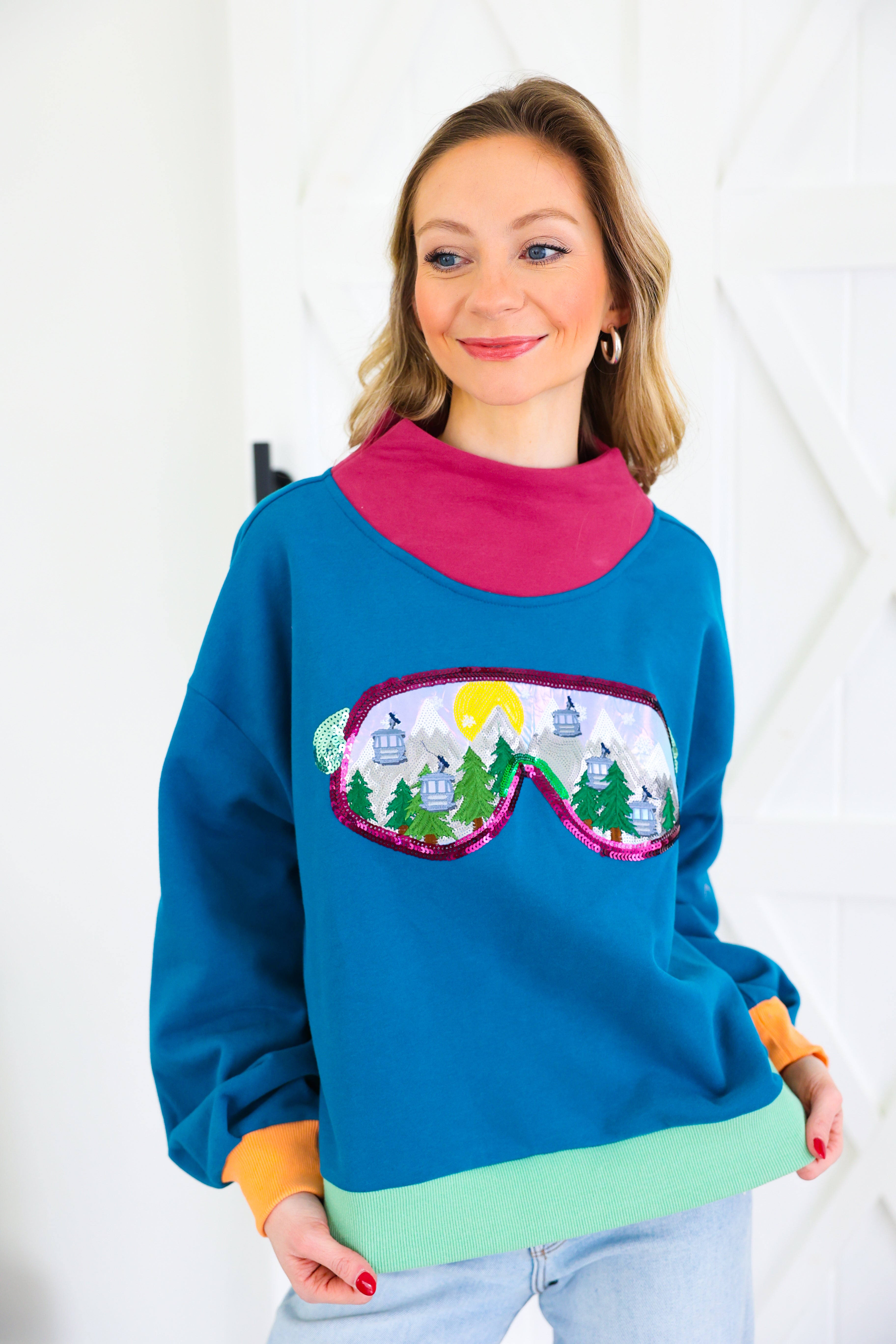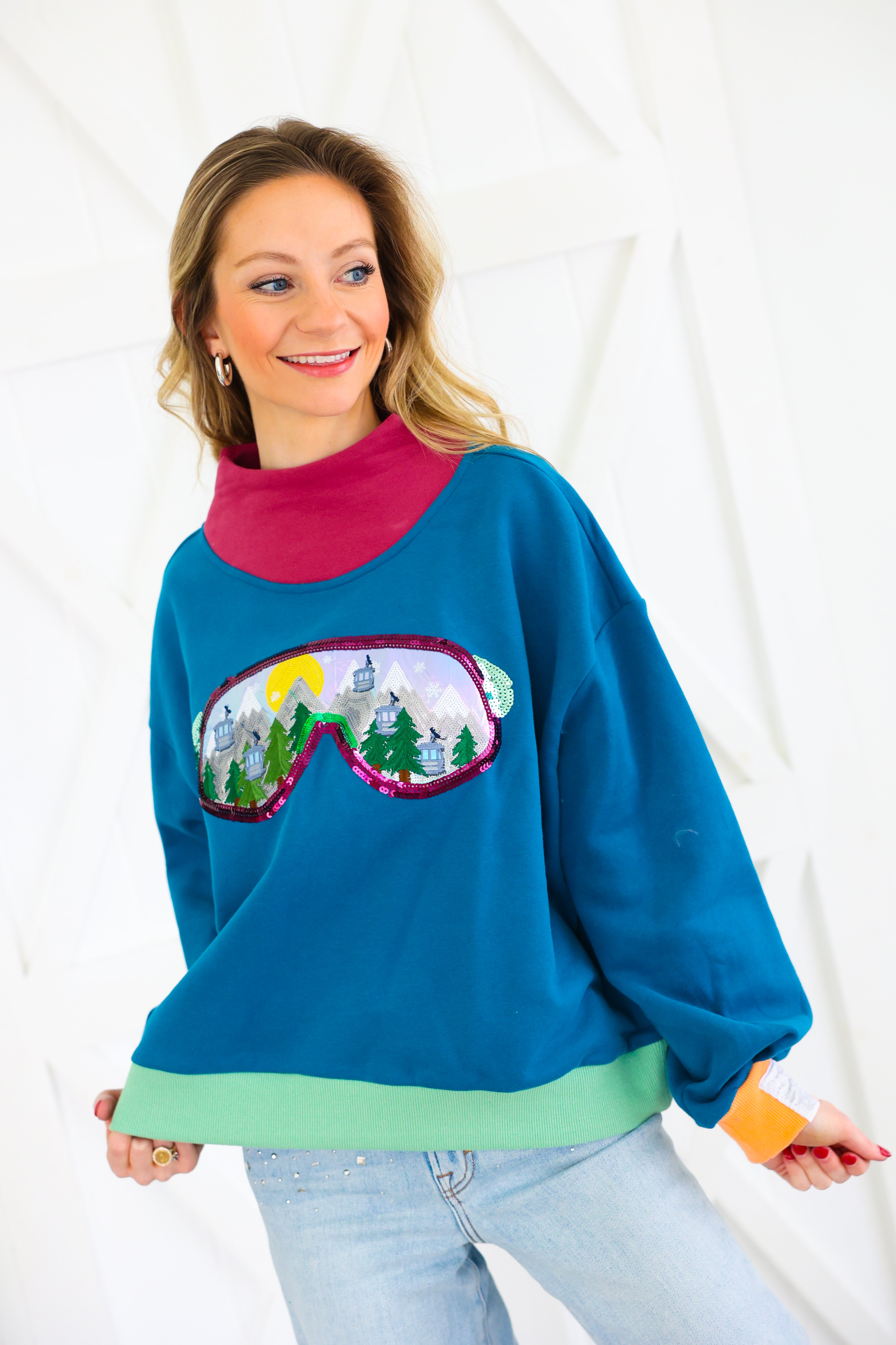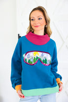 Colorblock Ski Goggle With Reflection Mock Neck Sweatshirt Queen of Sparkles