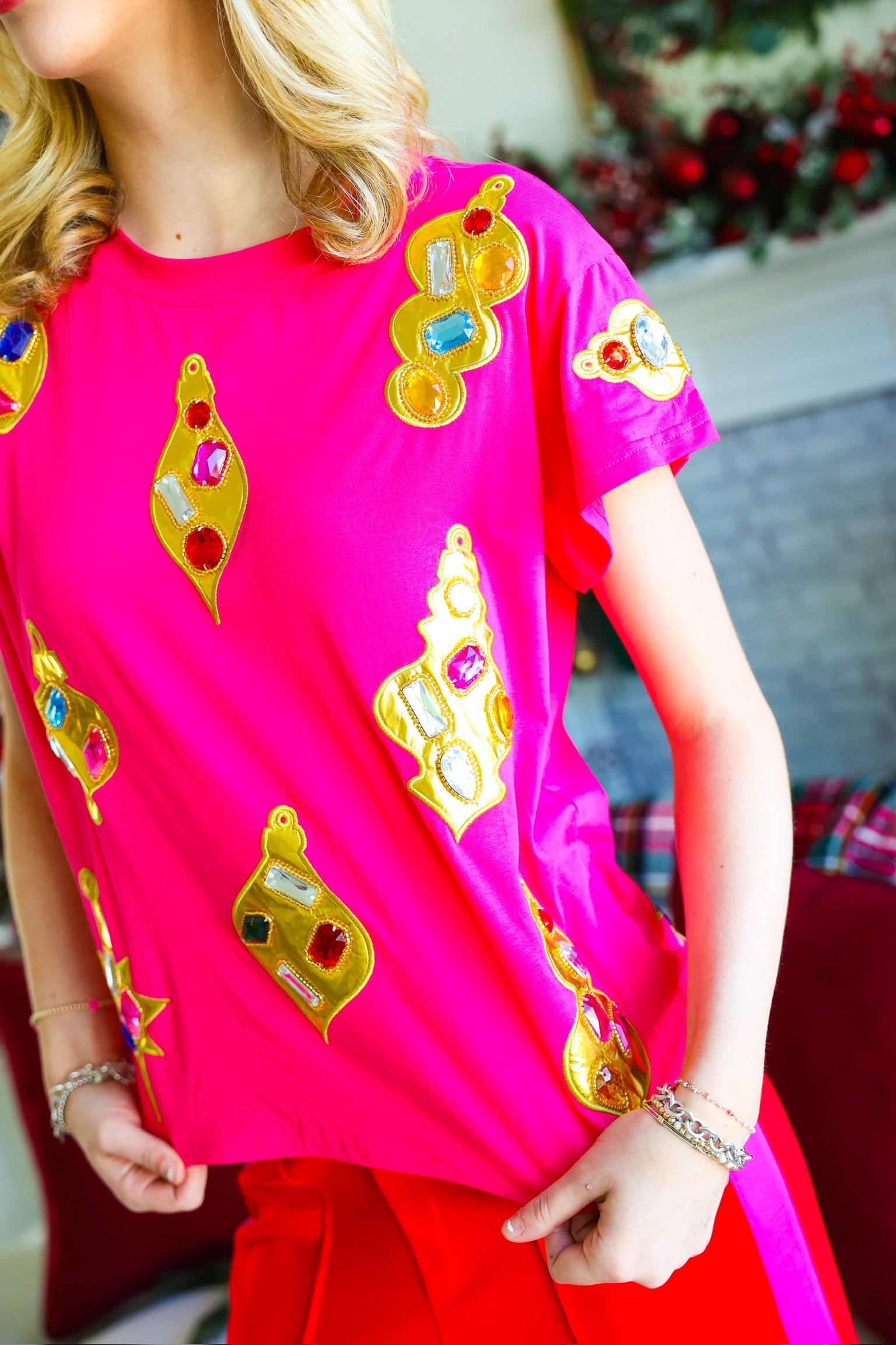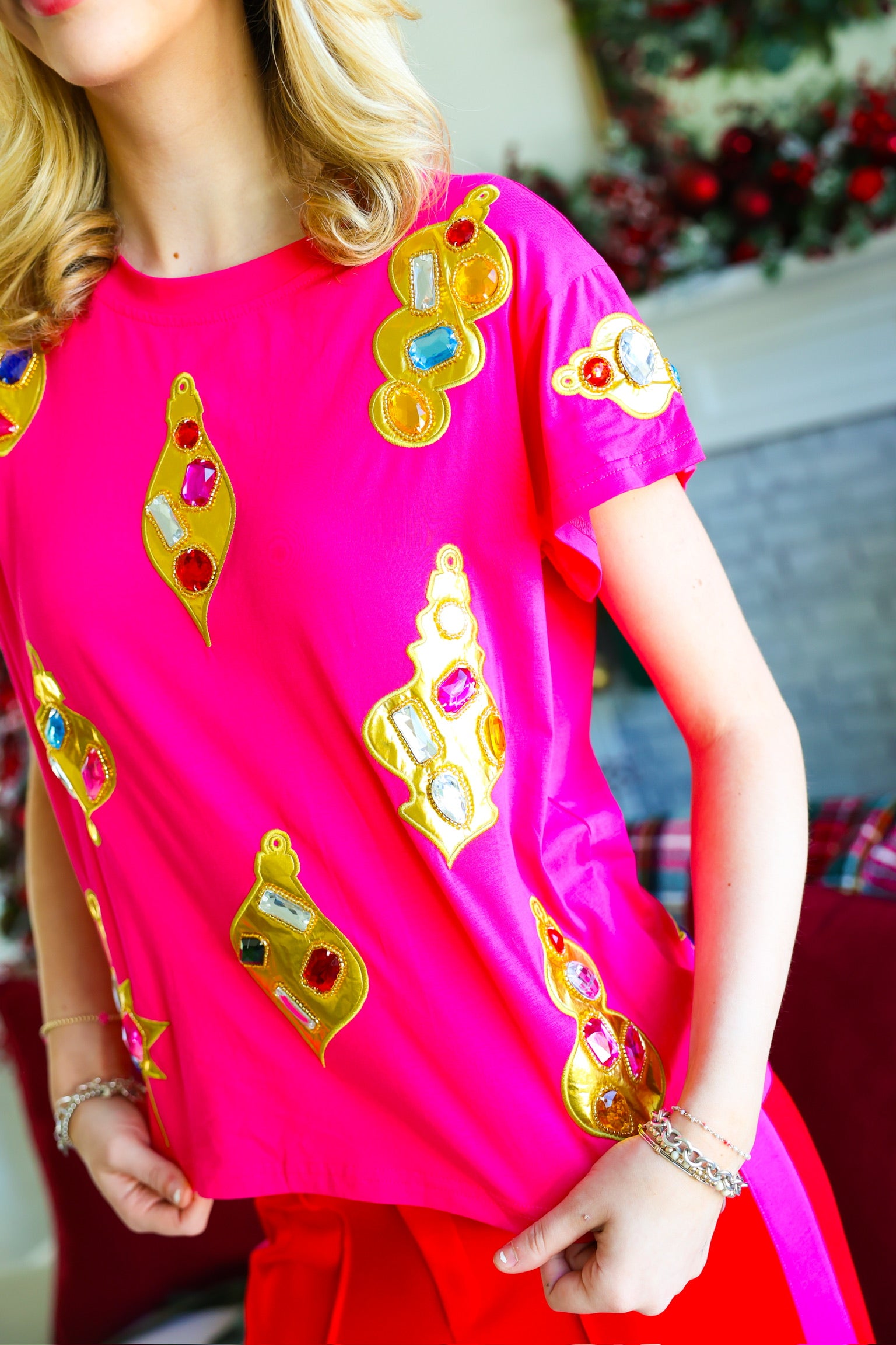 Hot Pink Multi Diamond Ornament Tee Queen of Sparkles