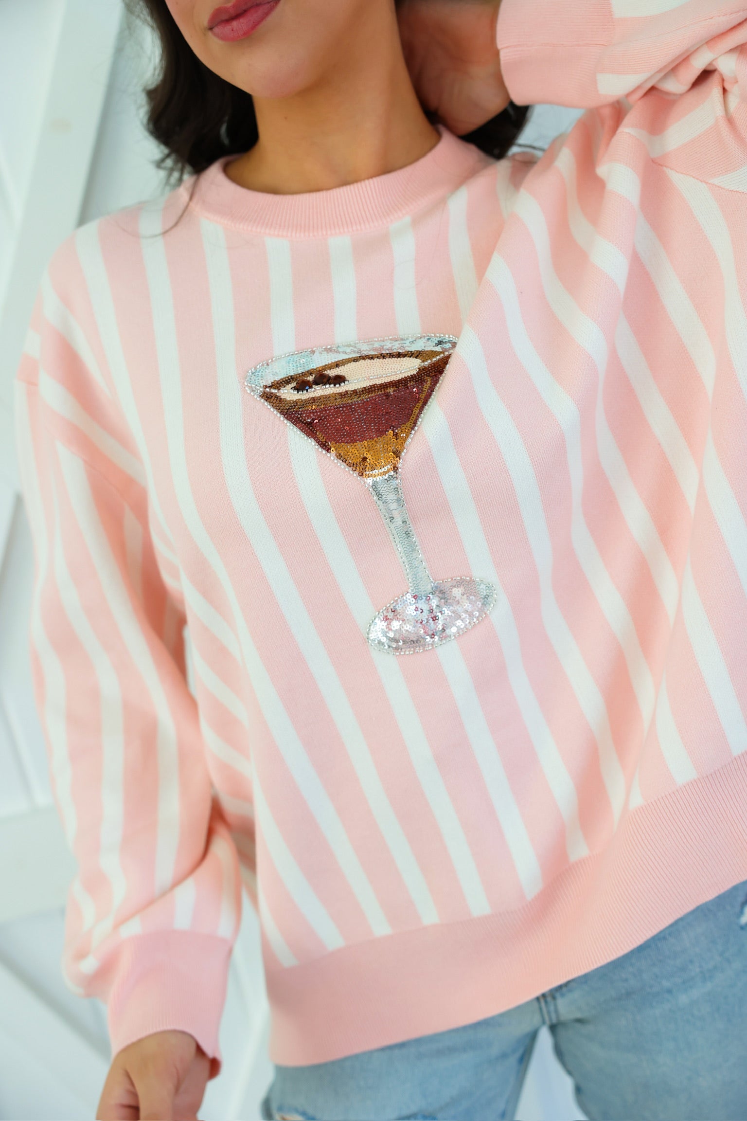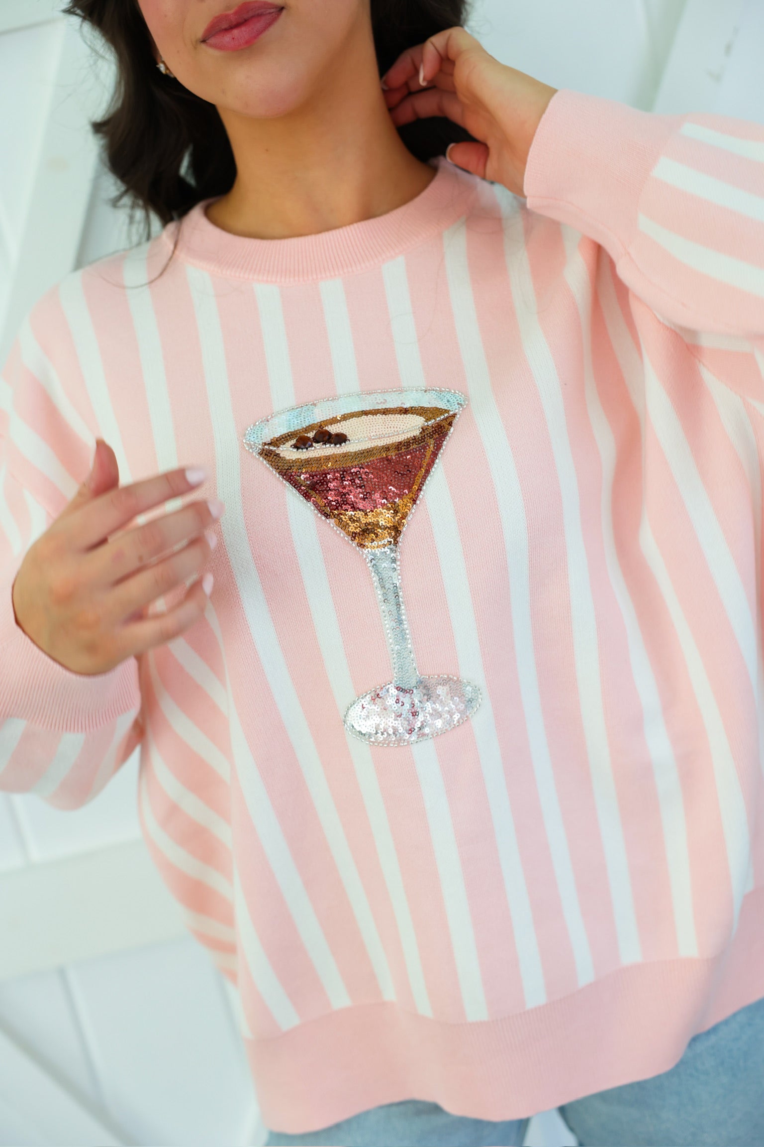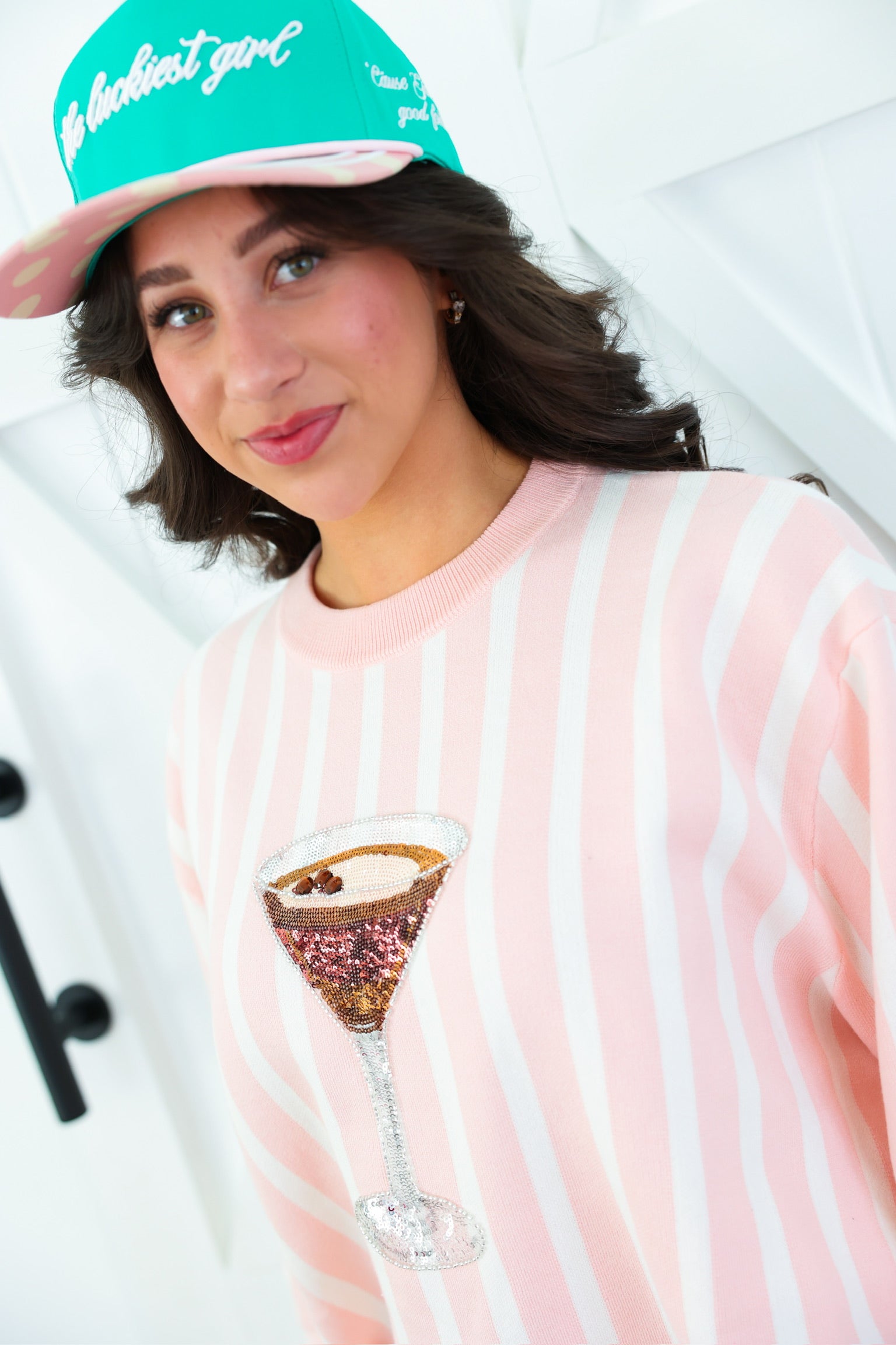 Queen of Sparkles Light Pink & White Stripe Espresso Martini Sweater