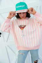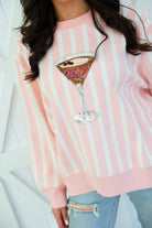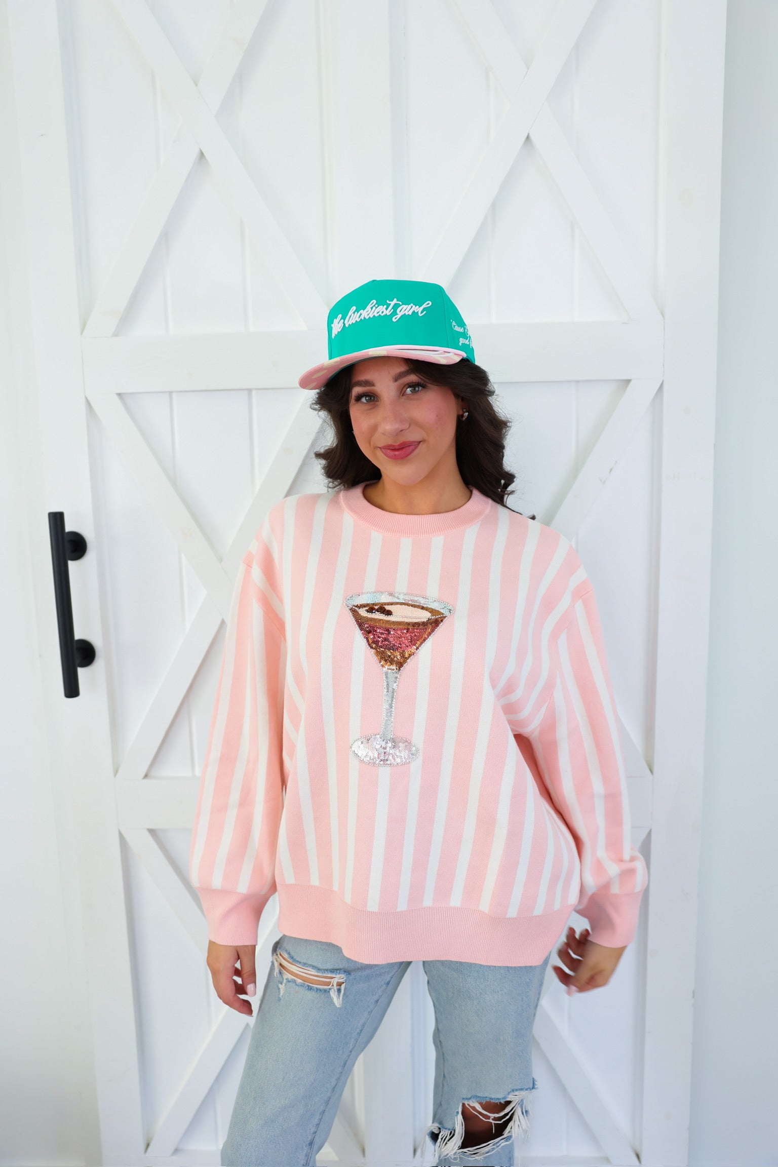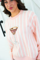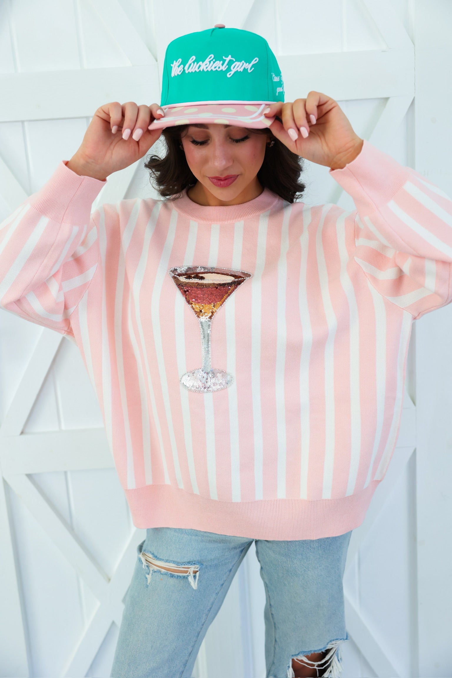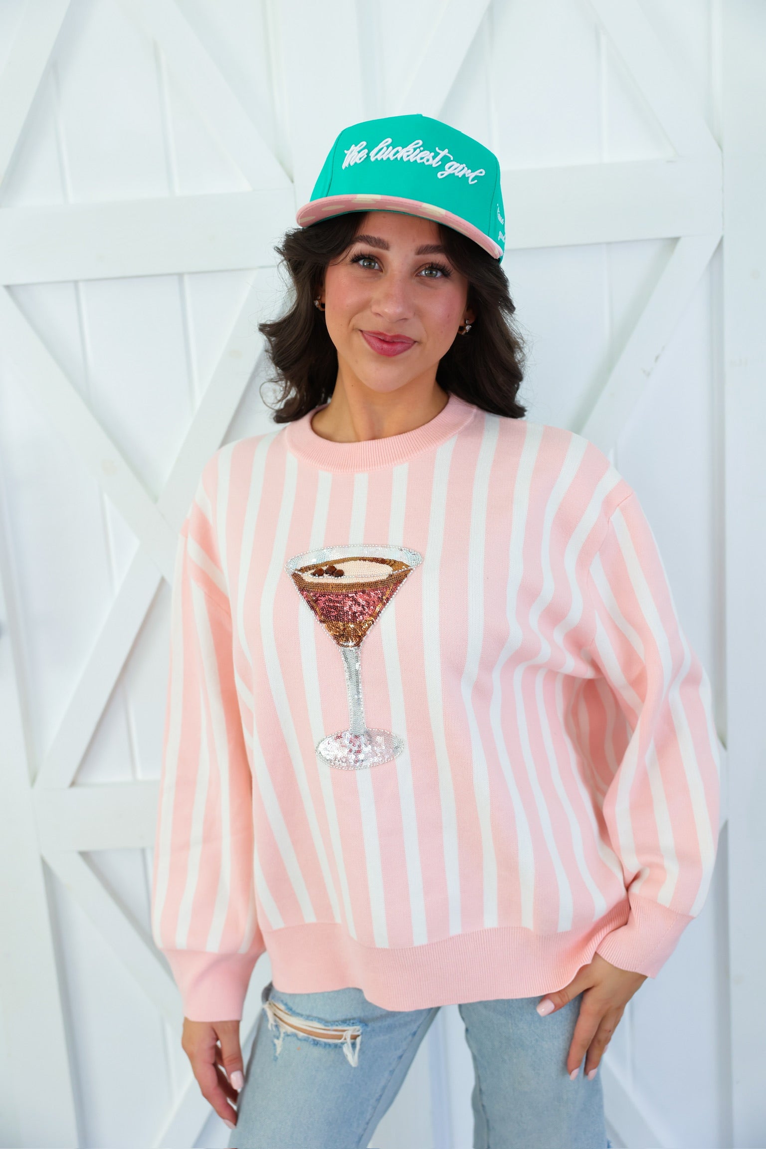 Queen of Sparkles Light Pink & White Stripe Espresso Martini Sweater
