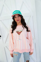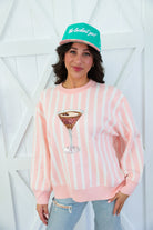 Pretty in pink with a splash of sass 🍸💗 This striped sweater is playful, polished, and perfect for girls’ night.