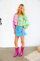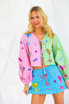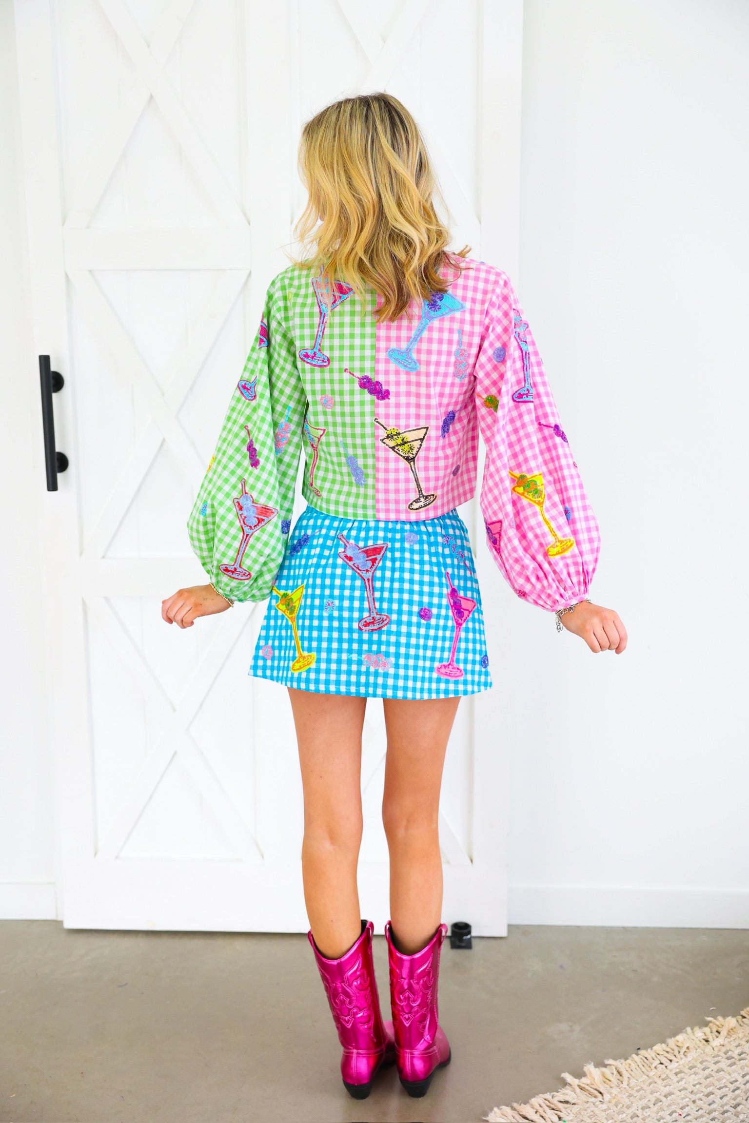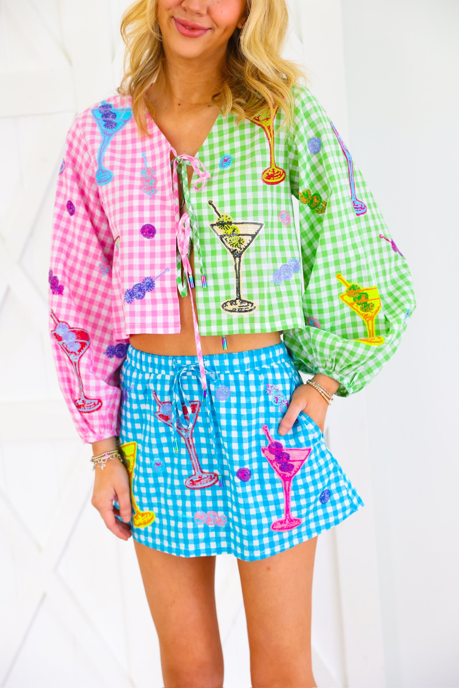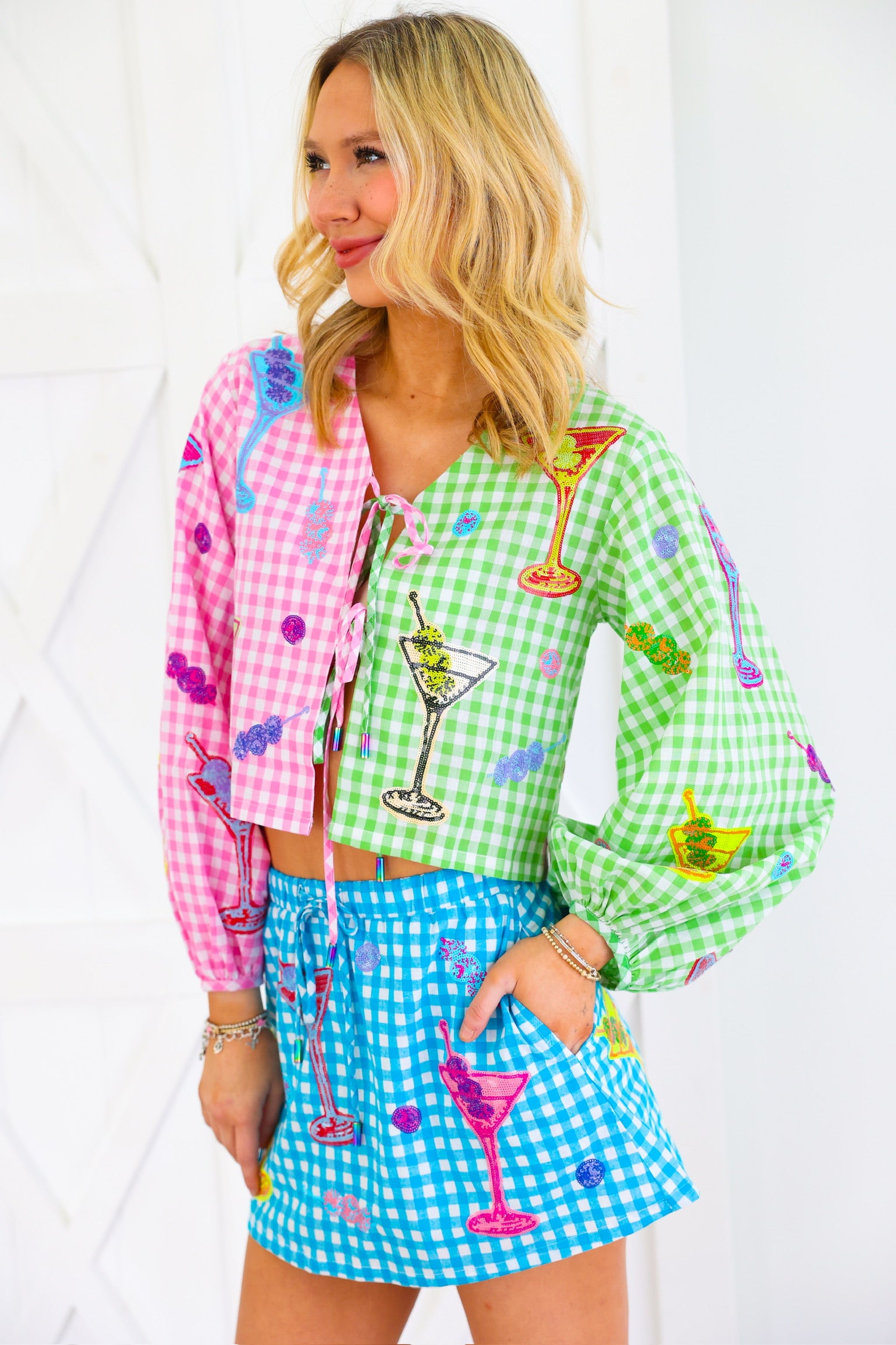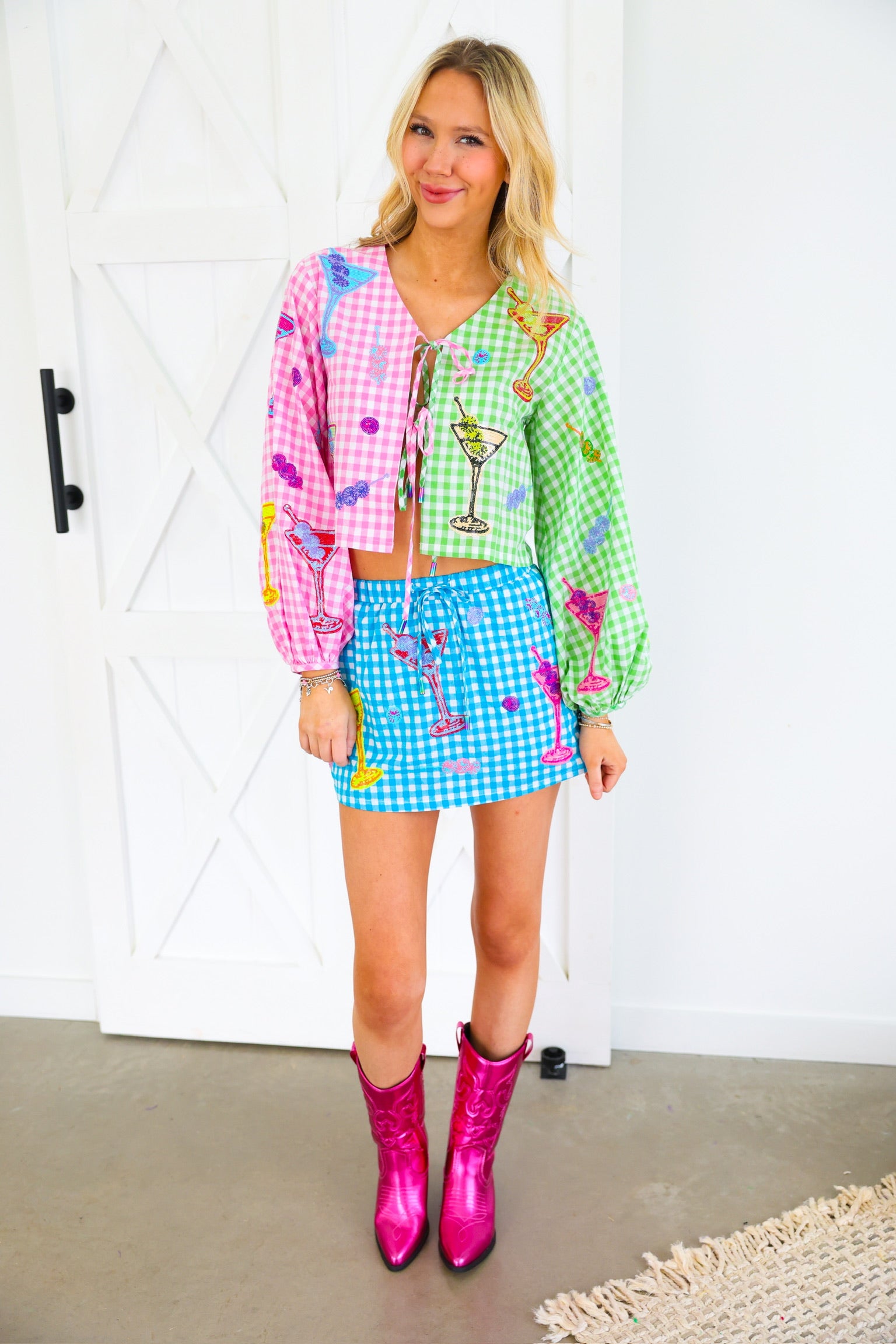 Multi Colorblock Gingham Martini Tie Up Cotton Top Queen of Sparkles