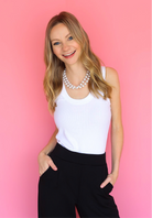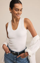 Experience effortless style and comfort with the Sirena Rib Tank in white by Z Supply. This fitted tank features a flattering scoop neck and wide straps, perfect for layering or wearing alone. Crafted from a premium feather rib blend of 95% cotton and 5% spandex, it offers a soft, breathable feel with just the right amount of stretch. The heavy soft wash enhances its durability and softness, while the 22-inch length ensures a versatile fit. Elevate your wardrobe with this essential tank that combines quality and timeless design.