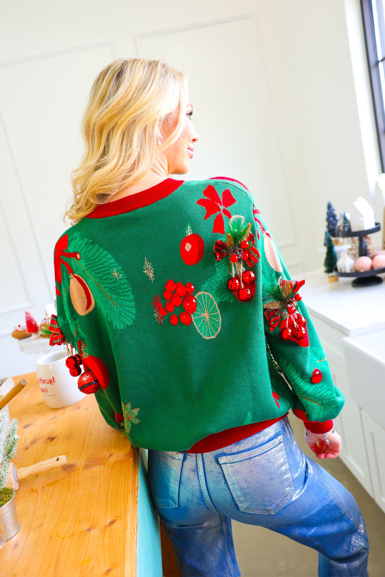 Dark Green & Red Christmas Cocktails Sweater Queen of Sparkles
