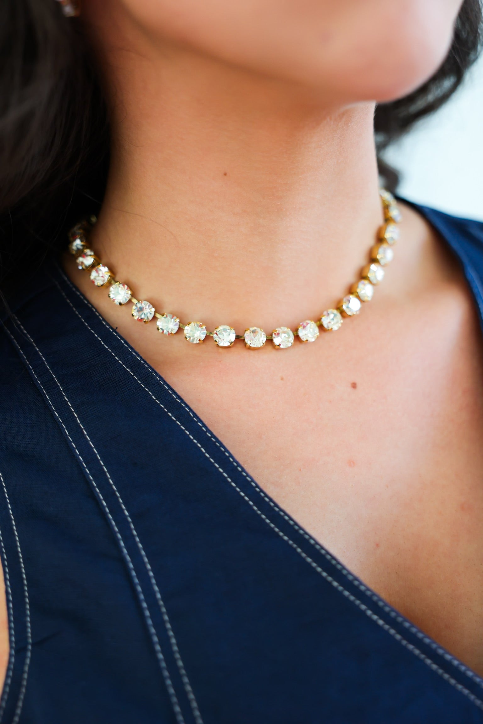 Classic, radiant, and endlessly versatile ✨ The Gold/Clear Oakland Necklace delivers timeless sparkle with a warm gold setting and brilliant clear crystals. This is the ultimate wear-with-everything piece — polished enough for evening, effortless enough for everyday.