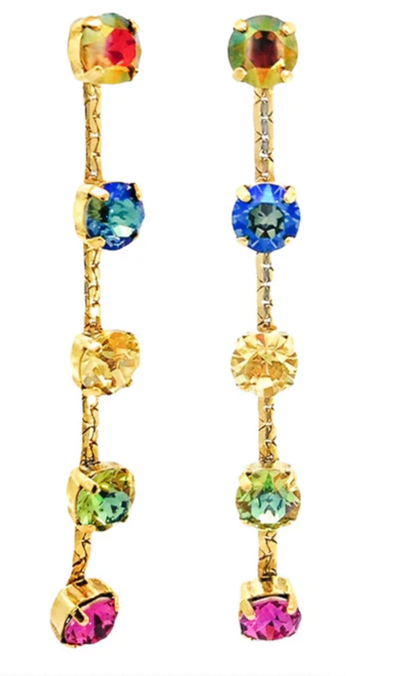 Slip on the Lilith Earrings and let your elegance sing! These stunning, 3" stunners are made in Canada with high quality antique gold plated brass base metal and exquisite crystals. Put these beauties on, and you'll be a showstopper!