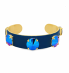 The Linsey Cuff in Midnight Express - a playful and unique addition to your accessory collection. Made in Canada with antique gold plated brass, high quality crystals, and hand painted enamel, this cuff is a one-of-a-kind piece that will add a touch of quirk to any outfit!