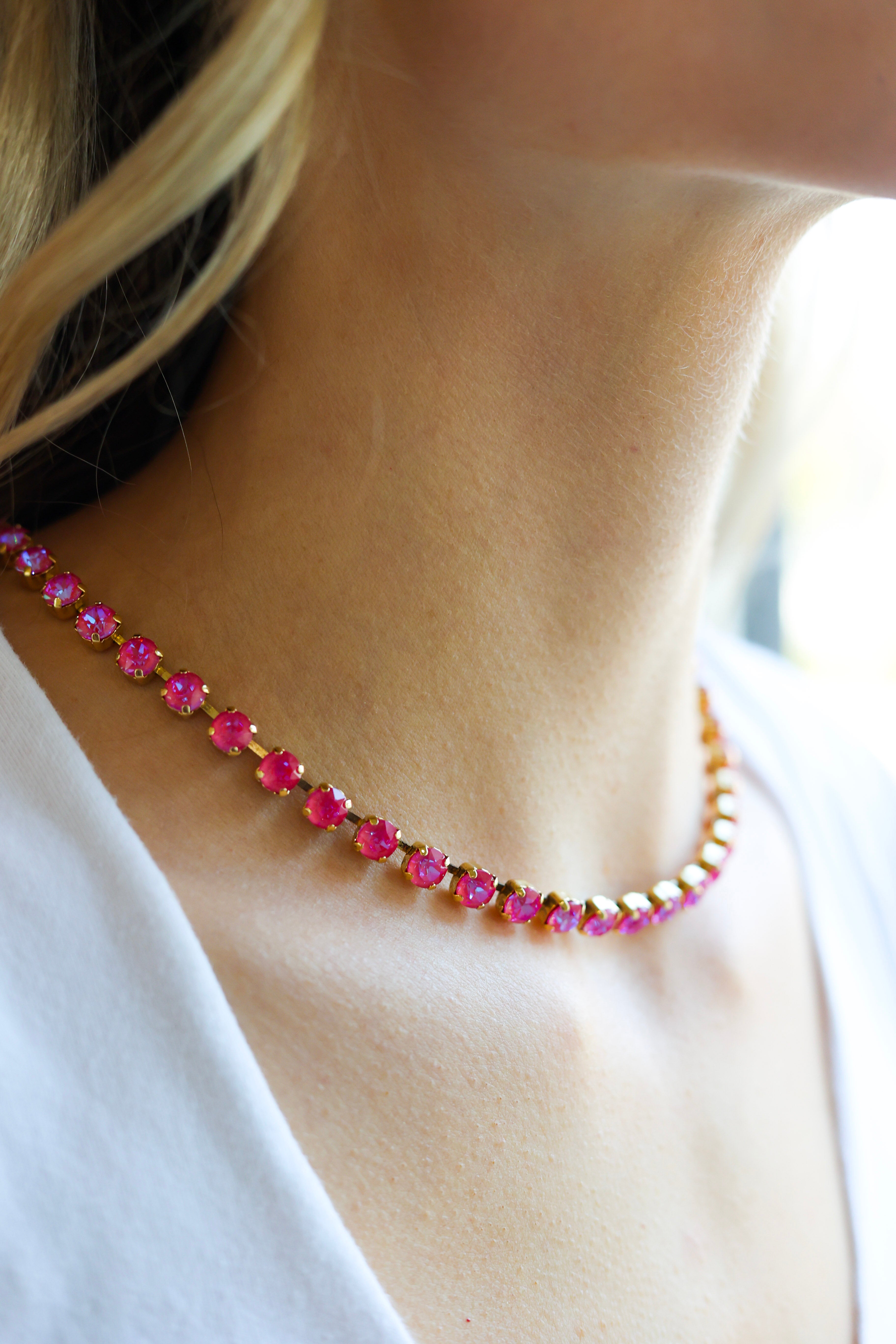 Designed for women who love TOVA jewelry, pink crystal necklaces, statement necklaces, luxury boutique jewelry, and designer-inspired accessories, the Sarina Necklace in Lotus Pink Delite is a must-have for adding color and sparkle to your jewelry collection. The vibrant pink crystals catch the light beautifully and instantly elevate any look. 💎🌸