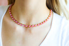 The TOVA Sarina Necklace – Lotus Pink Delite is the ultimate feminine sparkle piece that adds instant glam and color to any outfit. Featuring antique gold plating and stunning 6mm high-quality crystals, this luxe tennis-style statement necklace delivers the perfect balance of elegance and bold boutique style. Crafted with a brass base and measuring 14.5" in length, this made-in-Canada beauty sits perfectly at the neckline for maximum shine and compliments. ✨💖