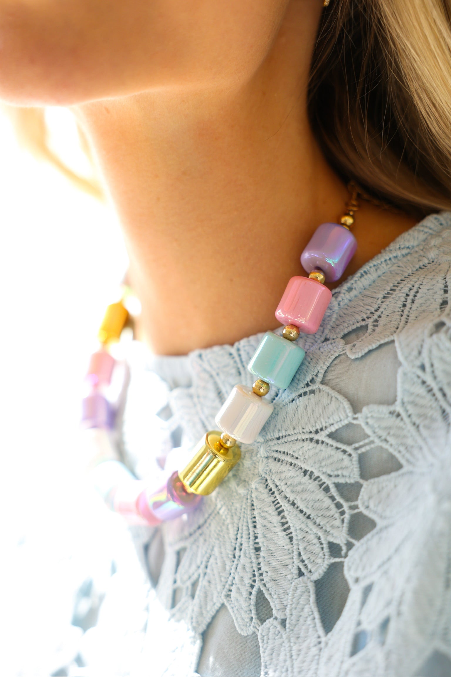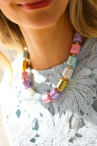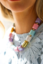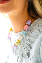 A colorful beaded necklace inspired by candy-bright hues. Fun, eye-catching, and perfect for layering with your favorite chains.