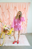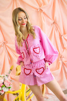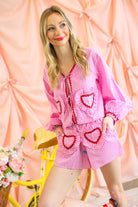 Style them with the Pink & White Gingham Ruffle Heart Pocket Tie-Up Top for a full sweetheart set, or pair with a simple tee or sweater to let the details shine 💕✨