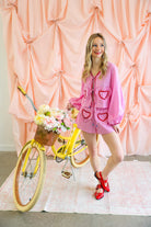 Cute, comfy, and impossible to ignore 💖 The Queen of Sparkles Pink & White Gingham Ruffle Heart Pocket Shorts are the perfect blend of playful charm and standout style. Designed in a classic pink-and-white gingham print, these shorts feature adorable heart-shaped pockets trimmed with ruffle detailing for an extra dose of sweetness. The relaxed fit makes them easy to wear, while the unique details give them that signature Queen of Sparkles flair.
