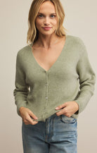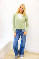 V-neck, Long sleeve, Button front, Midweight, Heavy soft wash, Regular fit, Cozy Spring