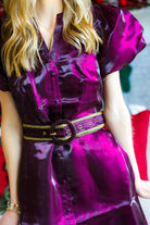 The Blakely Dress is exactly what your fall wardrobe is missing! In our new Regal print, the Blakely offers a cinched waist with a matching belt, button front and puff sleeves.