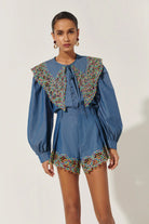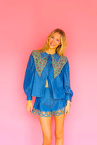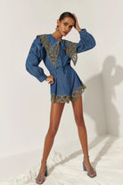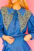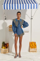 The Rocío Shorts are a flirty take on classic denim. With a flattering high waist and scalloped hemline trimmed in vibrant multicolor embroidery in yellows, greens and oranges, they’re equal parts easy and eye-catching.