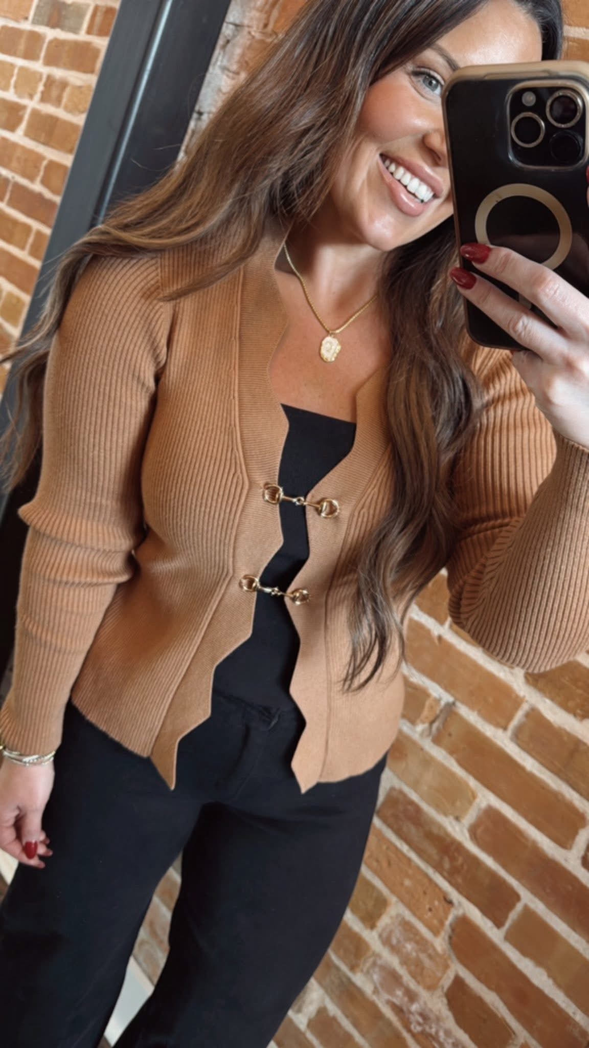 A classic with a chic equestrian twist 🤎 The Fore Horse Bit Cardigan Sweater is the kind of polished layering piece that instantly elevates your outfit. Designed in a warm tan hue, this ribbed knit cardigan features signature gold horse bit closures at the front—adding just the right amount of sophistication and style.