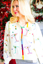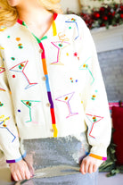 White Multi Cosmo & Martini Button Up Cardigan With Rainbow Trim Queen of Sparkles
