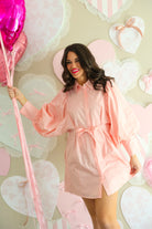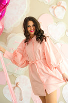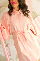 Effortlessly polished with a feminine touch, The Rosé Hour Dress 🌸✨ is designed to flatter with its easy shirt-dress silhouette and adjustable tie waist. Softly structured with voluminous sleeves and a relaxed fit, this style offers both comfort and refinement. The rosy pink hue adds a fresh, elevated pop of color, making this dress a versatile go-to for everything from casual daytime plans to evening gatherings.