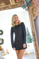 Sequins shimmer across this mini dress designed to catch the light. A scoop neck and long sleeves balance sparkle with wearability.