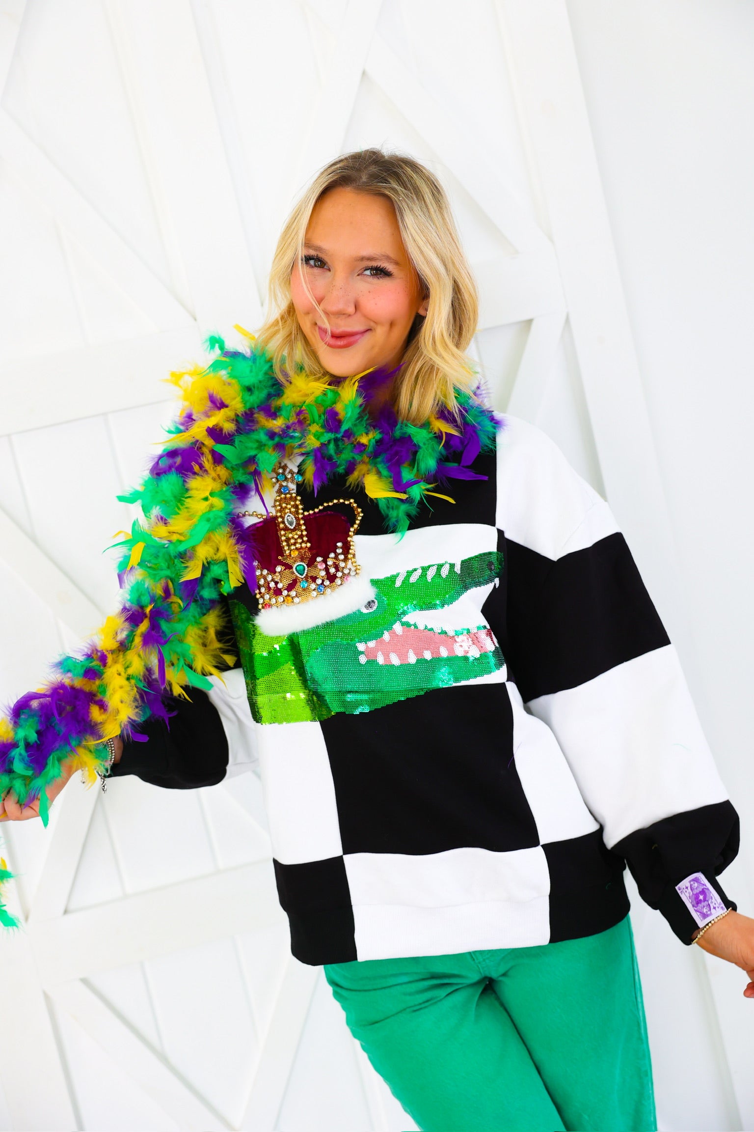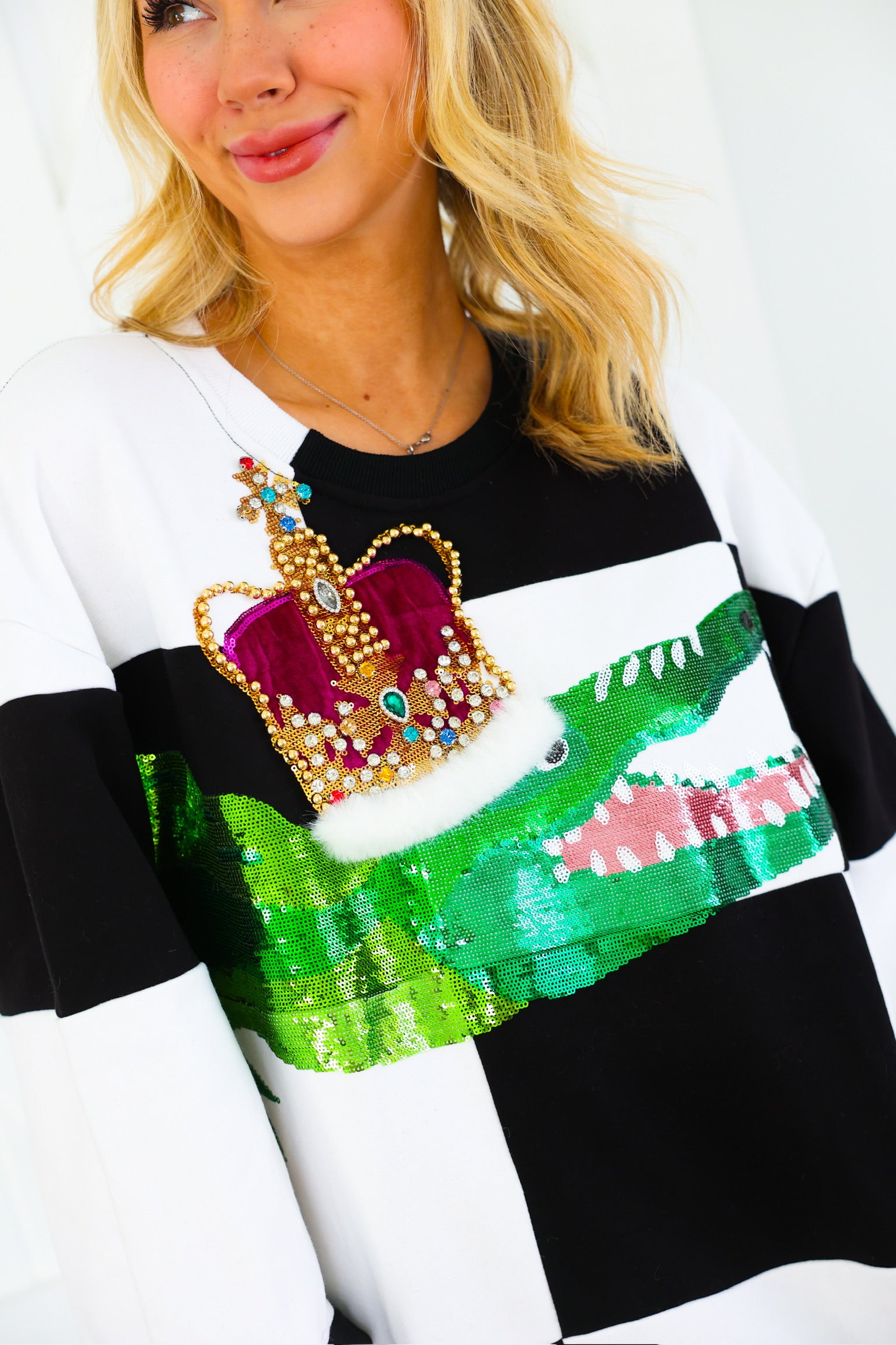 Black & White Checkered Alligator Queen Sweatshirt Queen of Sparkles