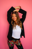 Elevate your wardrobe with the Molly Bracken Meg Black Woven Jacket. This light weight jacket is versatile, perfect for dressing up or down. Add a touch of fun to any outfit with this must-have piece.